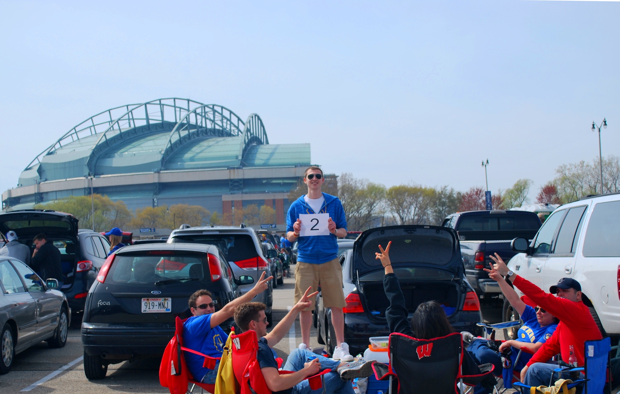 Another mid afternoon start for the second game of the year. I met up with a few friends in Fort, and then proceeded to someone else’s parent’s place to meet up with some more people. We wound up leaving Fort around 11:40 (we had wanted to leave at 11:00). Again a detour was made to pick up someone, this time in Brookfield. Made it to the Yount parking lot at 1 pm sharp. When we pulled in to the lots I noticed an advertisement plane flying above, I think it was the same one from opening day, but I didn’t bother to read the ad on opening day. After a closer look: