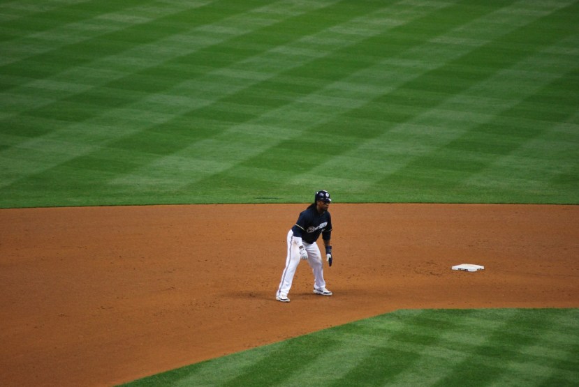 I took some pictures with my DSLR during the game, but it’s tough during night games or when the roof is closed. I don’t have the fastest lens and my pictures aren’t as crisp as I’d like. A faster lens would run $700-$2000, so I think I’ll stick with the one I’ve got. This is Braun cruising into second after his first inning double.