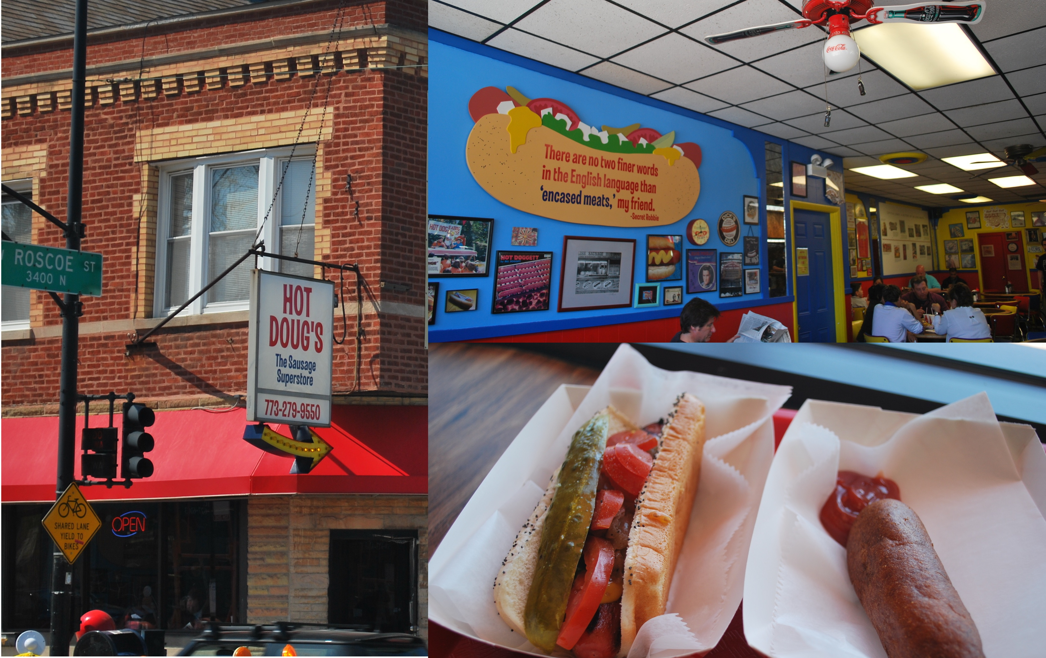 Below you have the exterior of Hot Doug’s (which is very inconspicuous), the inside (with a hilarious quote on the wall), and my lunch. I ordered “The Dog”, which is their Chicago-Style hot dog, consisting of a char-grilled dog, mustard, caramelized onions, relish, tomatoes, a pickle, and celery salt. I also got “The Dave Pound”, which is a corn dog. Let me tell you, “The Dog” is probably in the top five things I’ve eaten. It was simply amazing, and am upset that it took me so long to have a Chicago-style hot dog. The line stretched outside by the time I sat down, because it was right around noon. They get stuff out quickly, and it was worth the wait. I’ll be hitting up Hot Doug’s again when I’m back in Chicago in June and August.