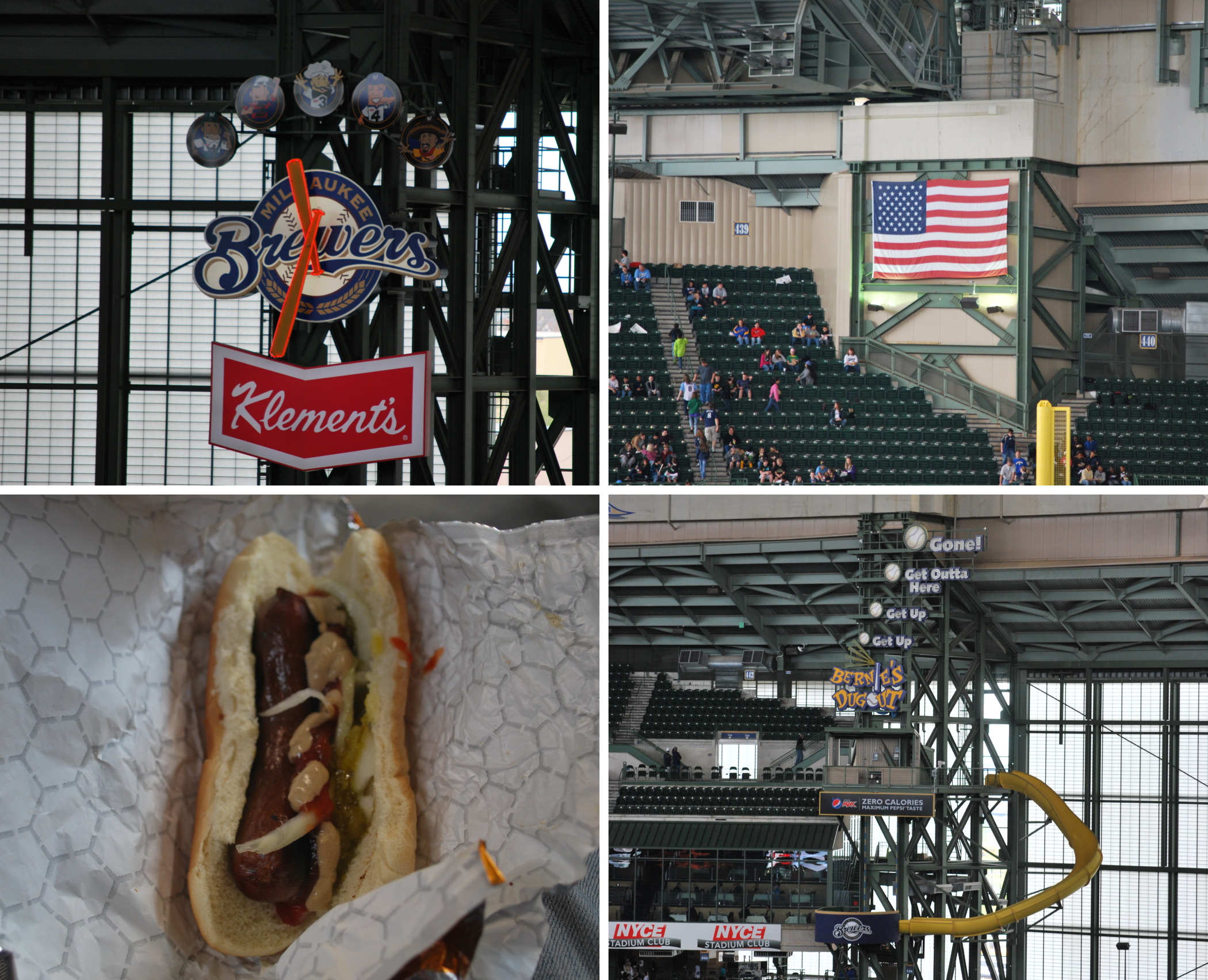 2) The American flag, which has been moved to this location since the beginning of last season, I believe. A large American as well as a Wisconsin flag waved alongside the scoreboard in centerfield for the first nine years of Miller Park, and I’m not sure what precipitated the move. My only guess is that it could’ve been distracting to batters when the flags would wave in the wind.