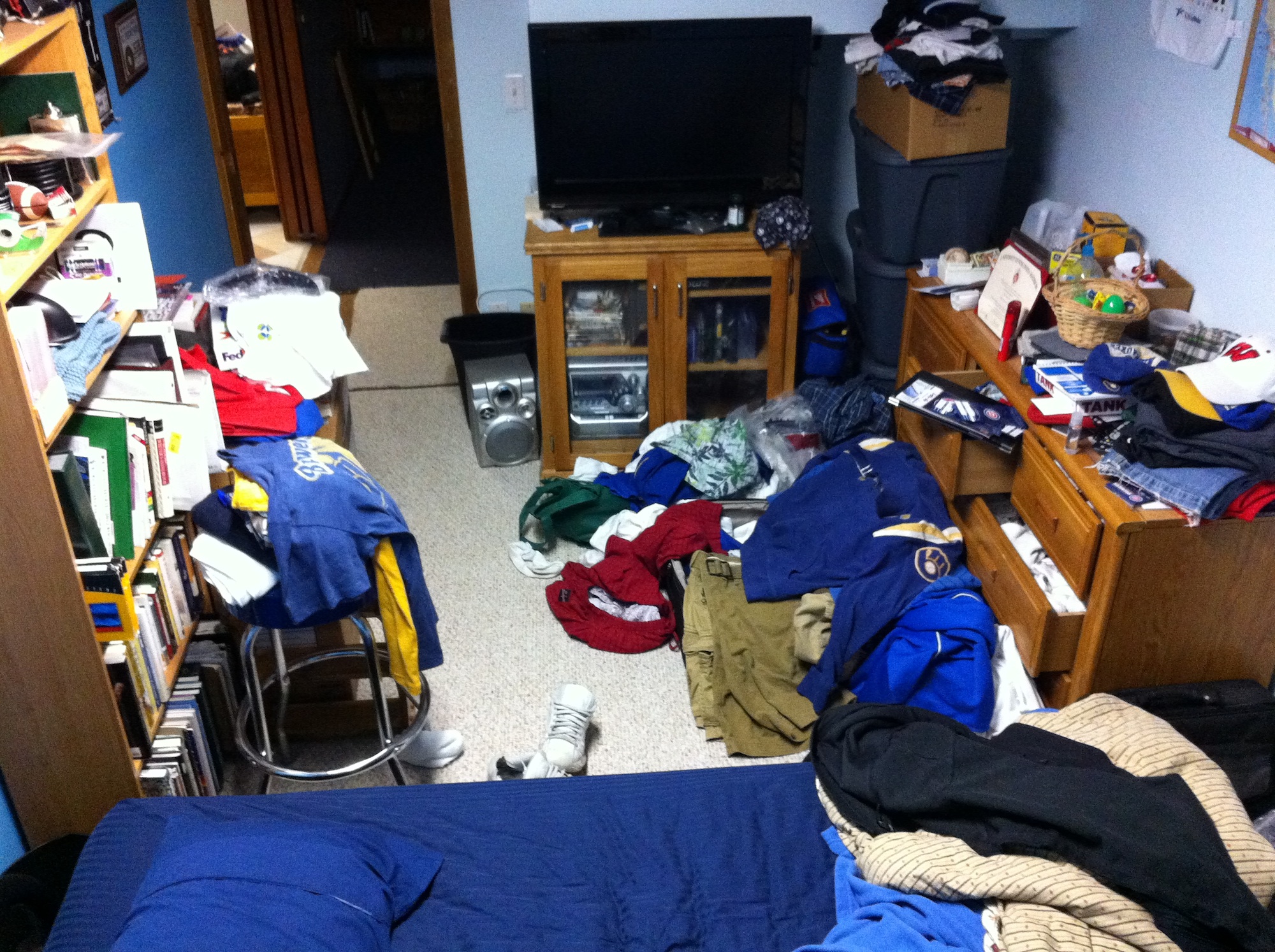 It’s been a hectic first two weeks of the season, and it’s been tough keeping up with everything. Below is my bedroom at my parents’ place (where I’ll be staying when the Brewers are in Milwaukee). My suitcase is buried under there somewhere, and I haven’t even unpacked it from the recent road trip yet. Since I have over 22 hours before the next game, I should be able to pull things together.