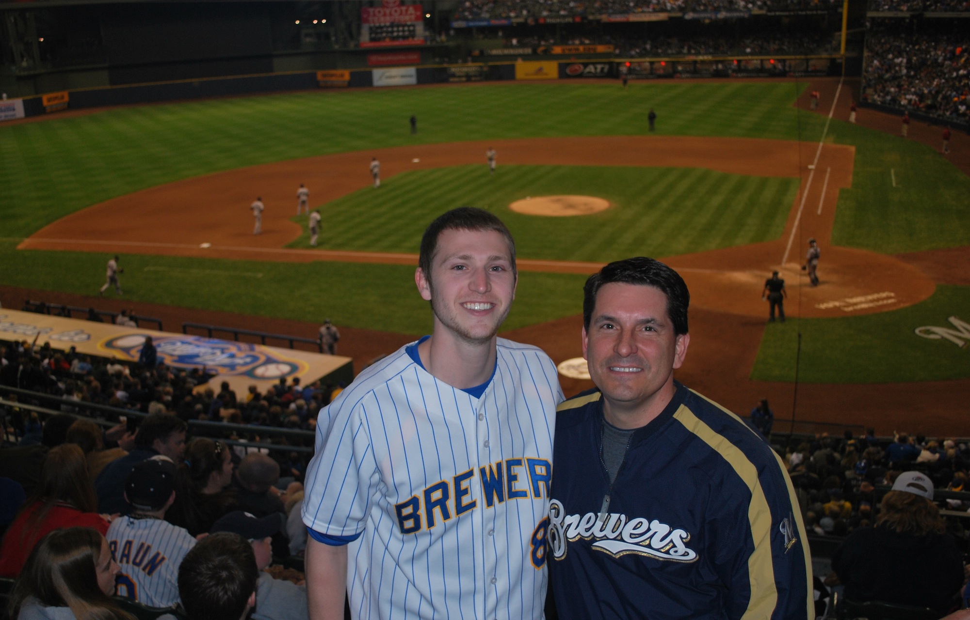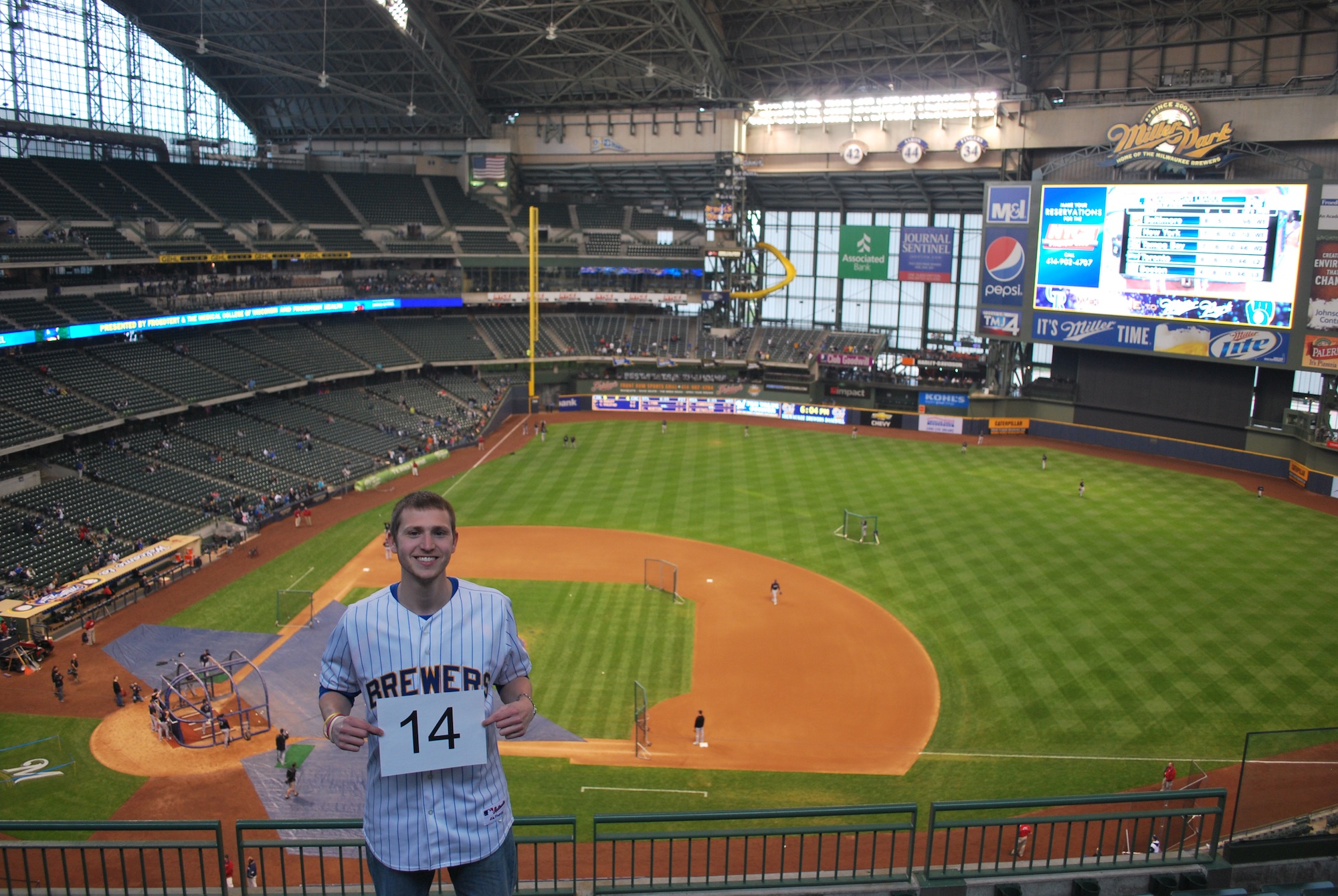 I picked up Dr. J at his house in Fort around 4:15 and we headed to Milwaukee. We hit some Friday rush hour traffic and weren’t parked until 5:50 (it’s normally an hour drive). We got inside and went to the upper deck, again, for game photo number 14.