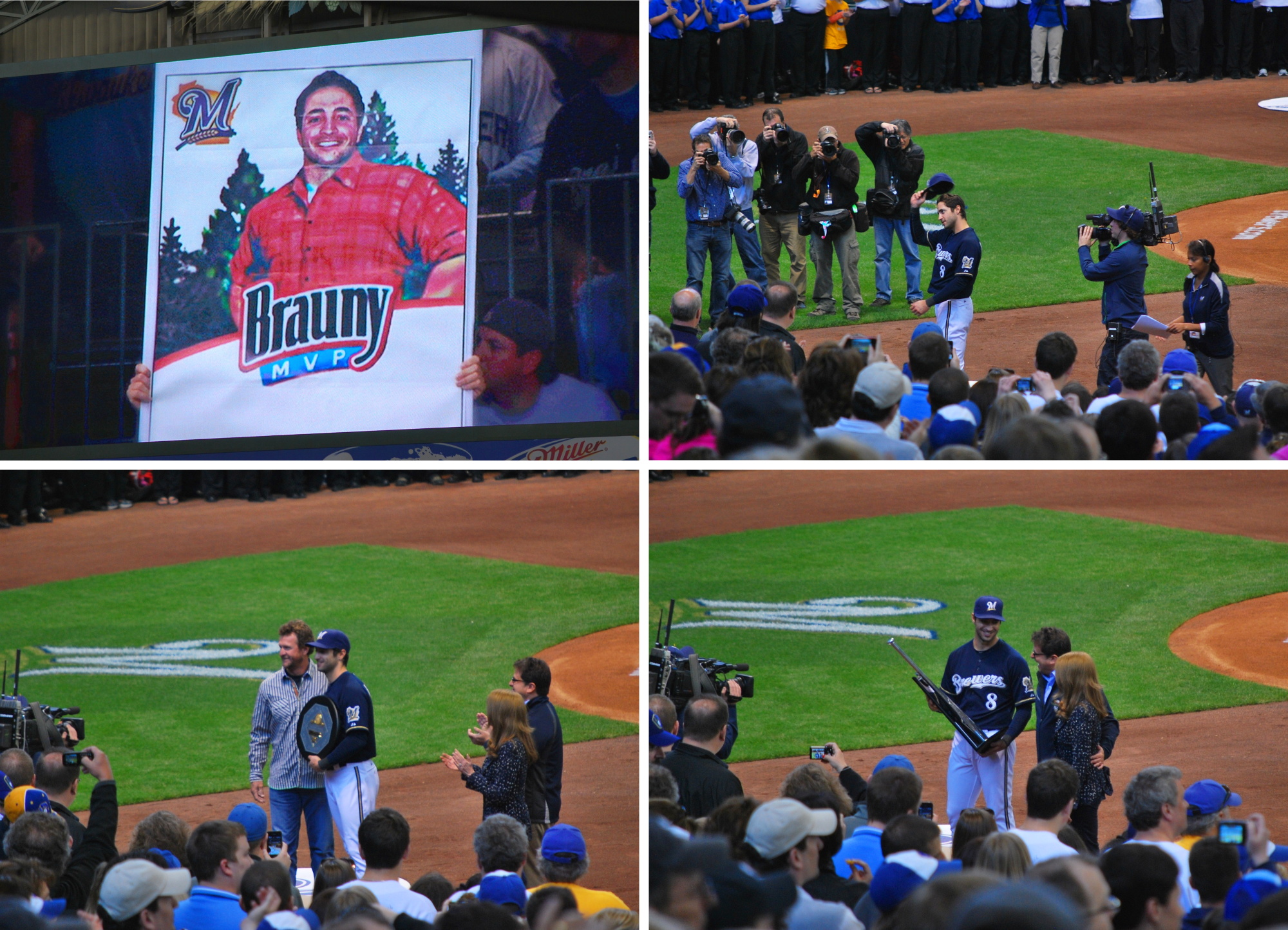 1) A poster/sign someone made and brought to a game last year. The Brewers played a short video montage which highlighted some moments from his MVP season.