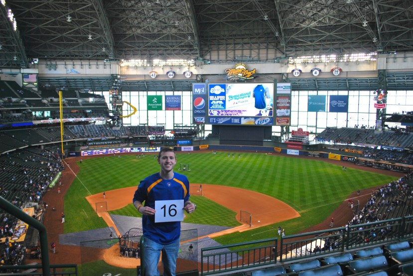 We got to Miller Park at 11:45, and went right to the upper deck. I’ll be glad when I’m done getting the picture taken up there. My knee really hasn’t gotten any better, so coming back down the stairs is the reason for the angst. It’ll be more crowded on the other levels though, so it’s really a gift and a curse.