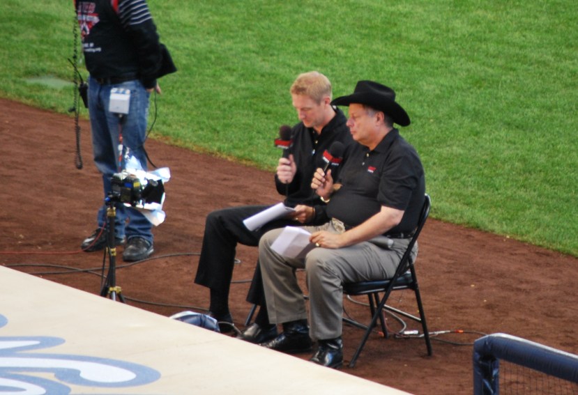 The Rockies broadcast does their pregame show from the field, and I saw the same two guys prior to the first two games of the series. Today I decided to take a picture: