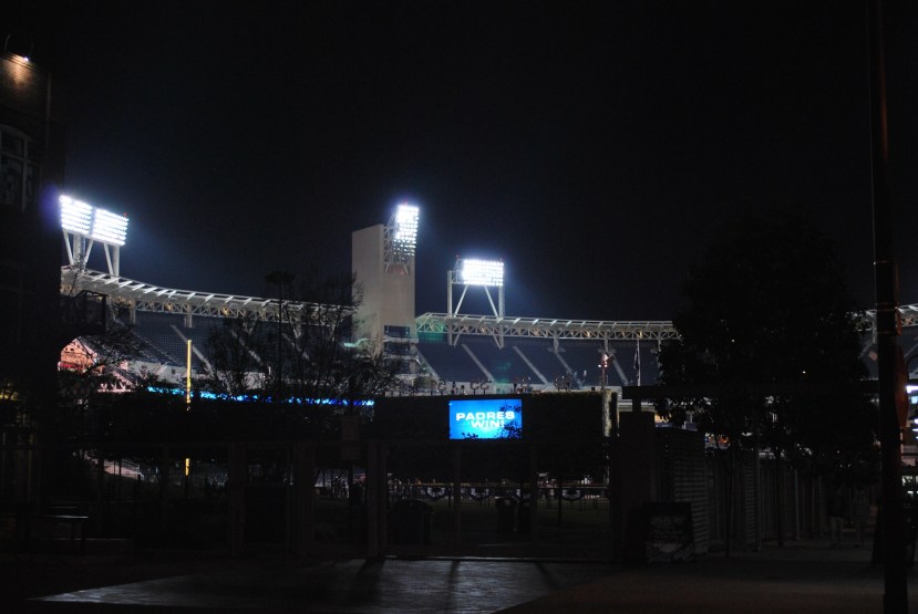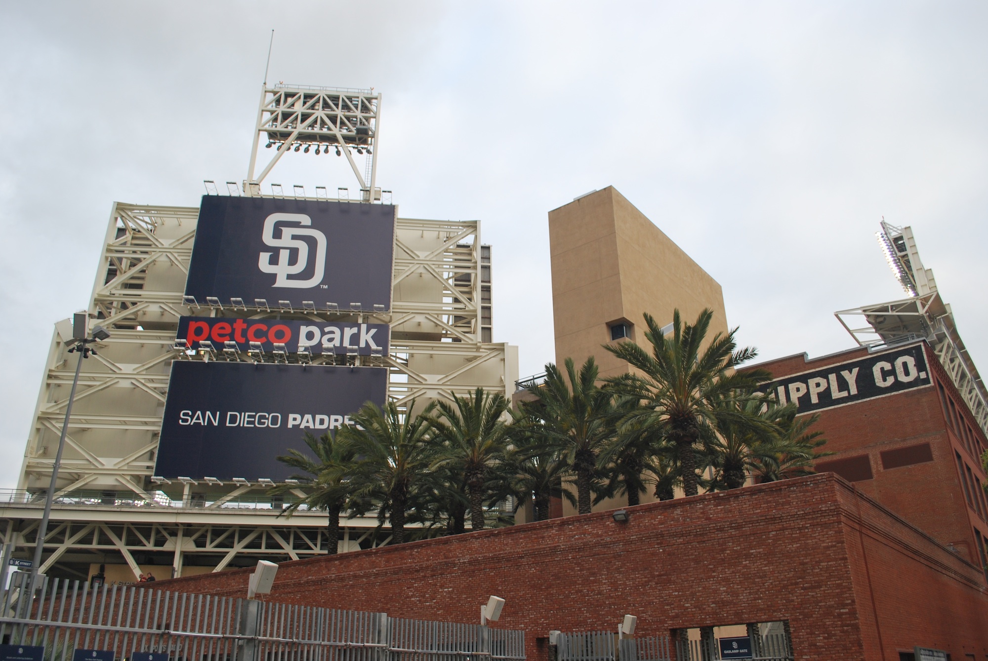 We made our way towards PETCO around 6:10. The picture below is of the back of the scoreboard, and you can make out the last bit of “Western Metal Supply Co.” on the right. That building was incorporated into the design of the ballpark (mainly because it was an historical landmark, and couldn’t be torn down. Apparently that only pertains to the exterior, because it now houses the team store in the lower level, and contains three levels of seating that are used for group parties.