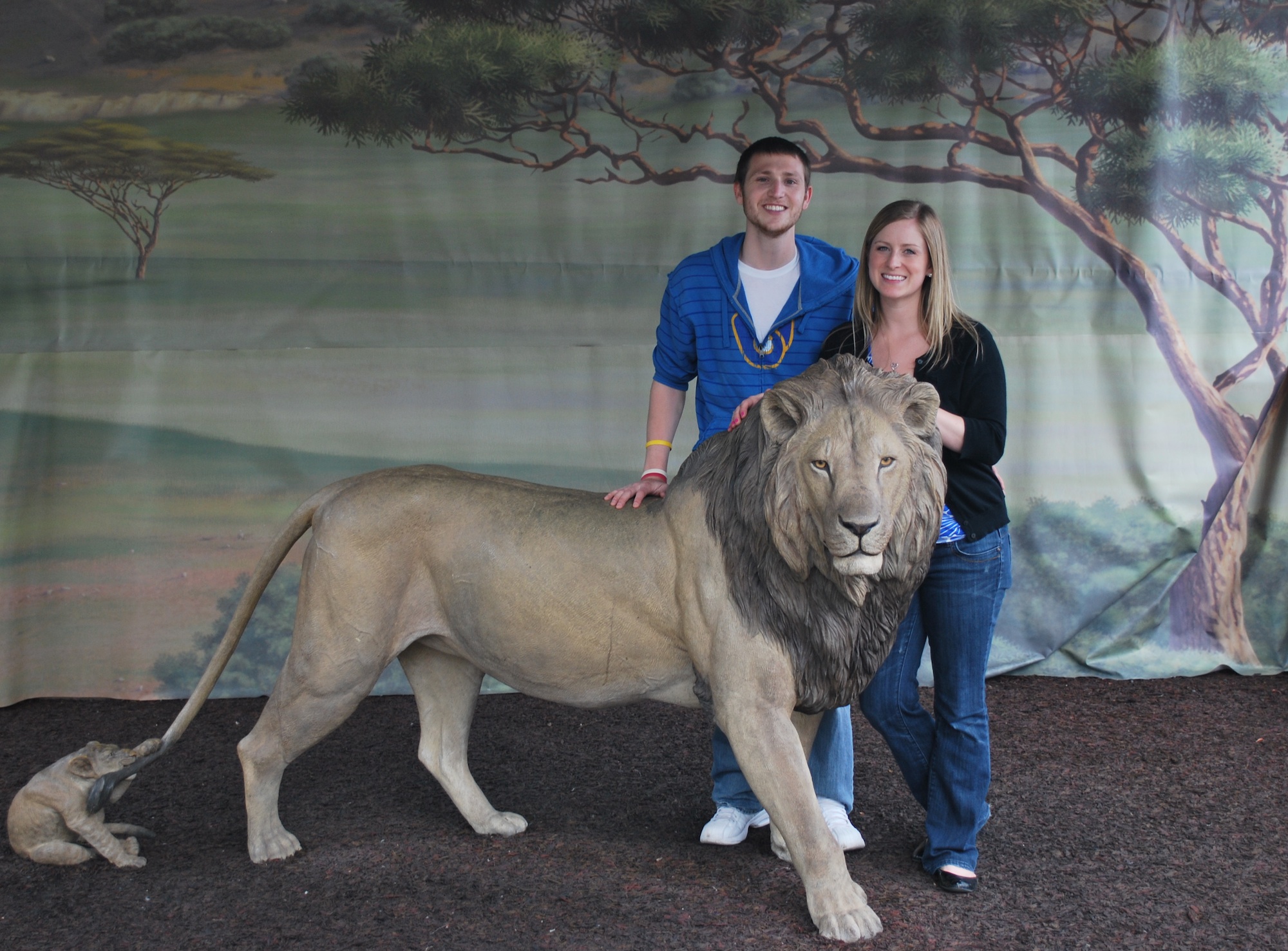 On our way out, I had another zoo-goer take a picture of Victoria and myself, in front of a lion statue they have near the entrance.