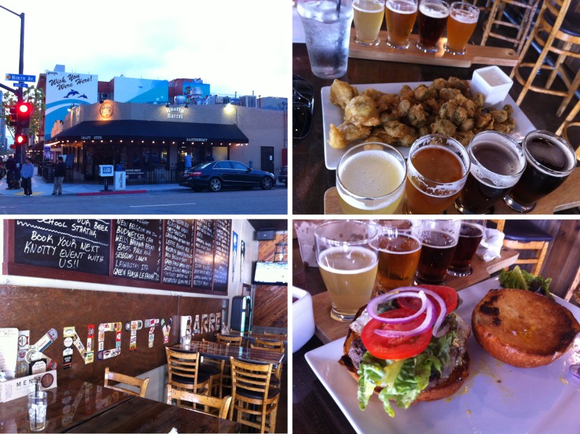 2) Our appetizer, which were fried pickled jalapeños and artichoke hearts, as well as my beer sampler. We both checked in on foursquare, so the sampler was half off, making it $4 for four 4 oz glasses.