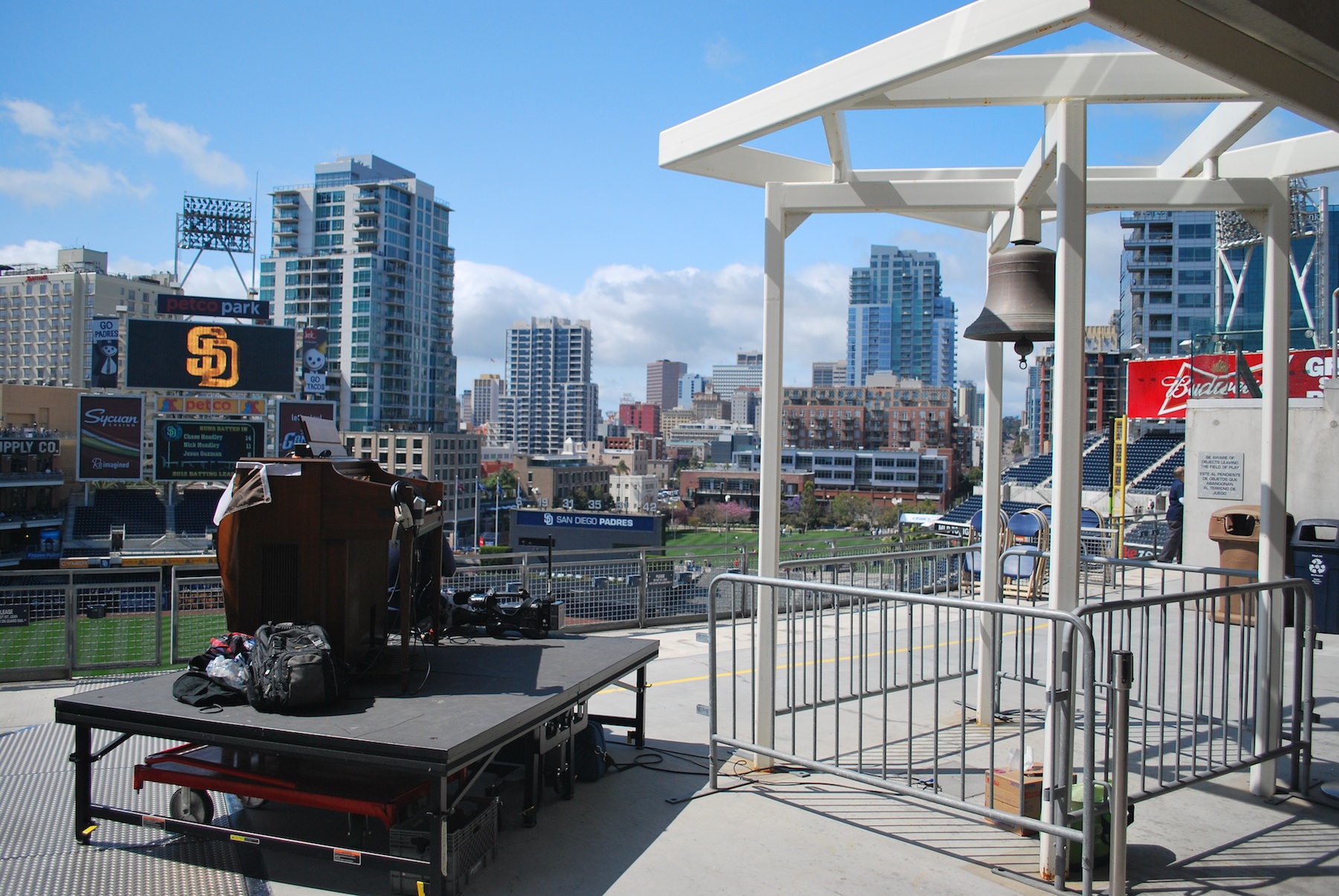 We started walking down the first base side in the upper deck, and we came across this organ. I talked to a employee nearby, and he said they use the organ for all day games, and they play it during the game from this location. The Brewers have a full time organist, Dean Rosko, and he plays for every game. I’m not sure why the Padres don’t have somebody manning it every game, but I won’t judge them for it.