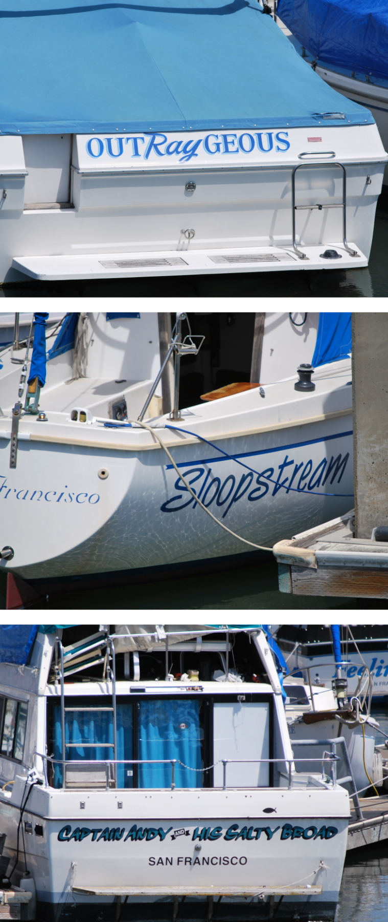Victoria and I walked out onto the pier that is beyond centerfield, sat out there for a bit and took in the scenery, and the great weather. When towards the end of the pier, we couldn’t help but notice some of the names of the boats that were docked. I thought these three were kind of funny.