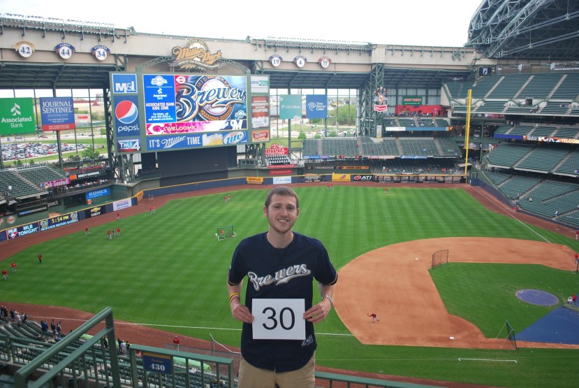 I went to the game with Crandall, whom I went to the game with on April 24th. I picked him up at 4:25 from his place in Fort, and made it to Miller Park by 5:38. We went to section 430 in the upper deck, for game photo number 30.
