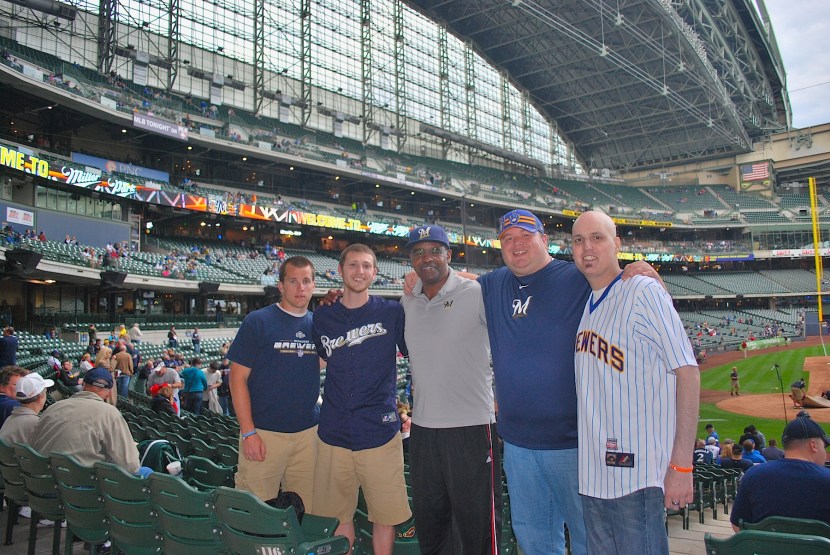 After thanking Jill and Daniel, Crandall and I went back to section 115, to see if the guys were there yet. I was meeting with Eric, Eric, and Larry. Eric McLean is also a leukemia survivor, and is battling for the seventh time now, after countless relapses. He was originally diagnosed at 18 with Acute Myelogenous Leukemia, and has received three stem cell transplants. If you want to read about his story, you can CLICK HERE. He’s one hell of a fighter, and he’ll be in my thoughts for the remainder of the season. I chatted with him and Larry Hisle, who played for the Brewers over parts of five seasons. Injuries prevented him from finishing his career the way he would have liked, and he only played in 79 games over his final four seasons in the majors. He’s got two World Series rings, as a member of the Toronto Blue Jays coaching staff, when they won in 1992 and 1993.