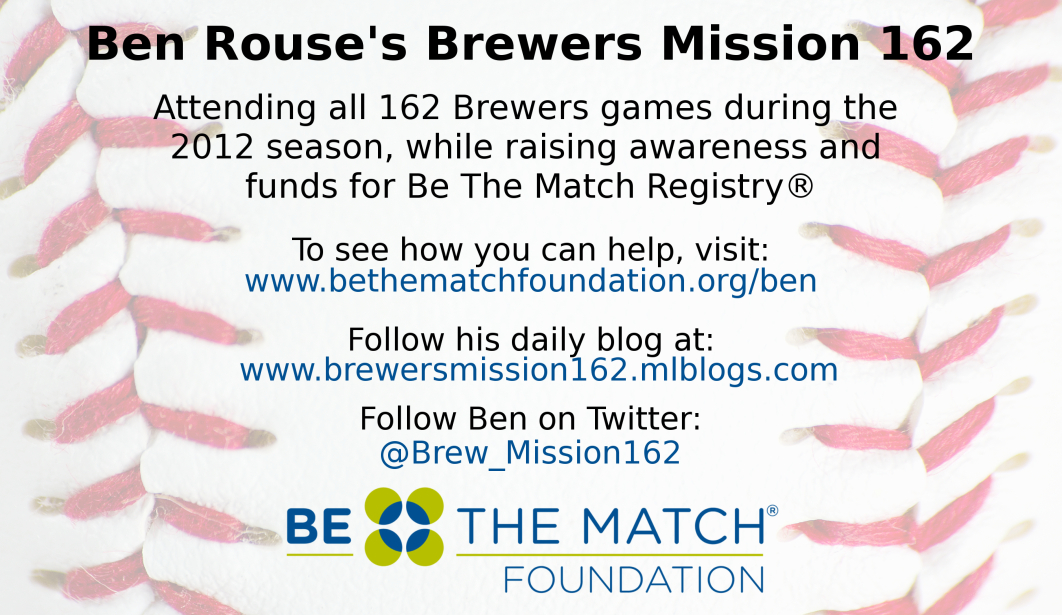 I’ll be at Miller park in ten hours for the 12:10 rubber match. I’m hoping that Greinke and the Brewers can get a win tomorrow to secure a series win, something they’ve only done 3 out of 9 times thus far.