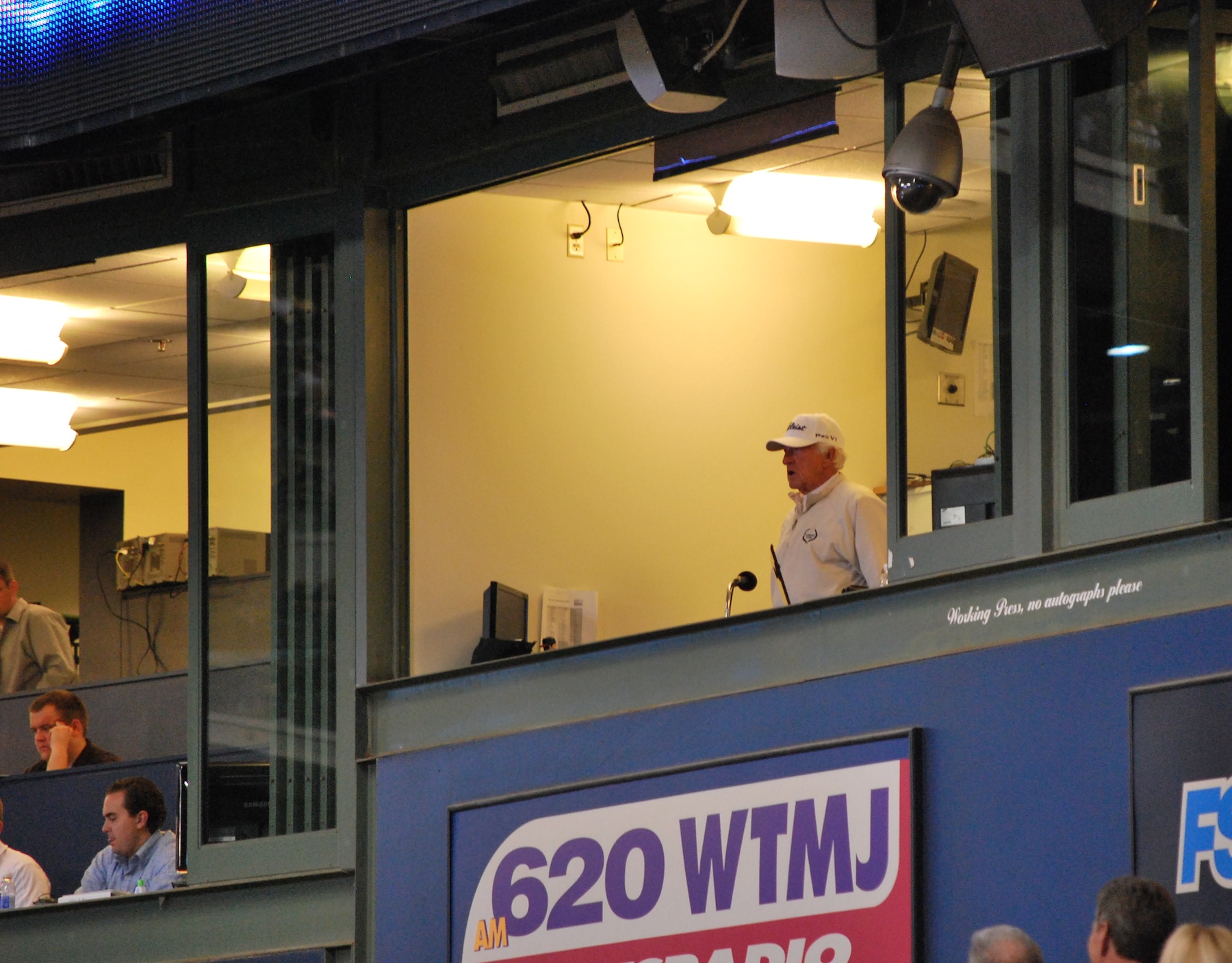 The Brewers got two quick outs in the bottom of the seventh but Bruan walked and Aramis Ramirez doubled him home. An infield single and a walk followed, which gave the pinch-hitting Lucroy a chance with the bases loaded. Almost everyone was on their feet, including Mr. Baseball himself, Bob Uecker.