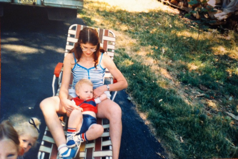 Today is Mother’s Day, and I spent it with my mom (Sue) at Miller Park. When I got home I went and found a picture of us when I was just a little guy. The picture was dated July 4th, 1988. I noticed that my two sisters wanted to be in the picture as well, and you can see their heads in the lower left hand corner.
