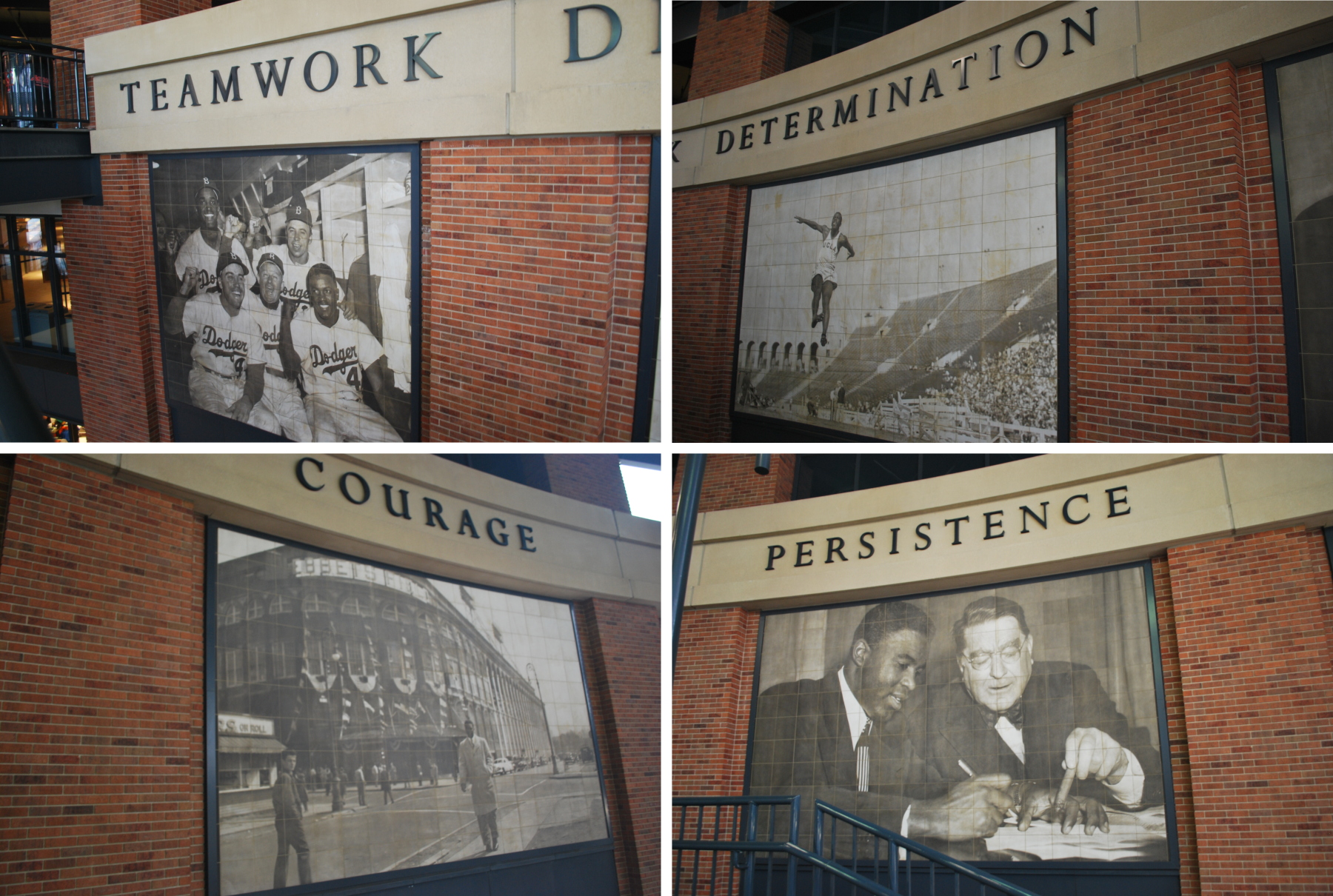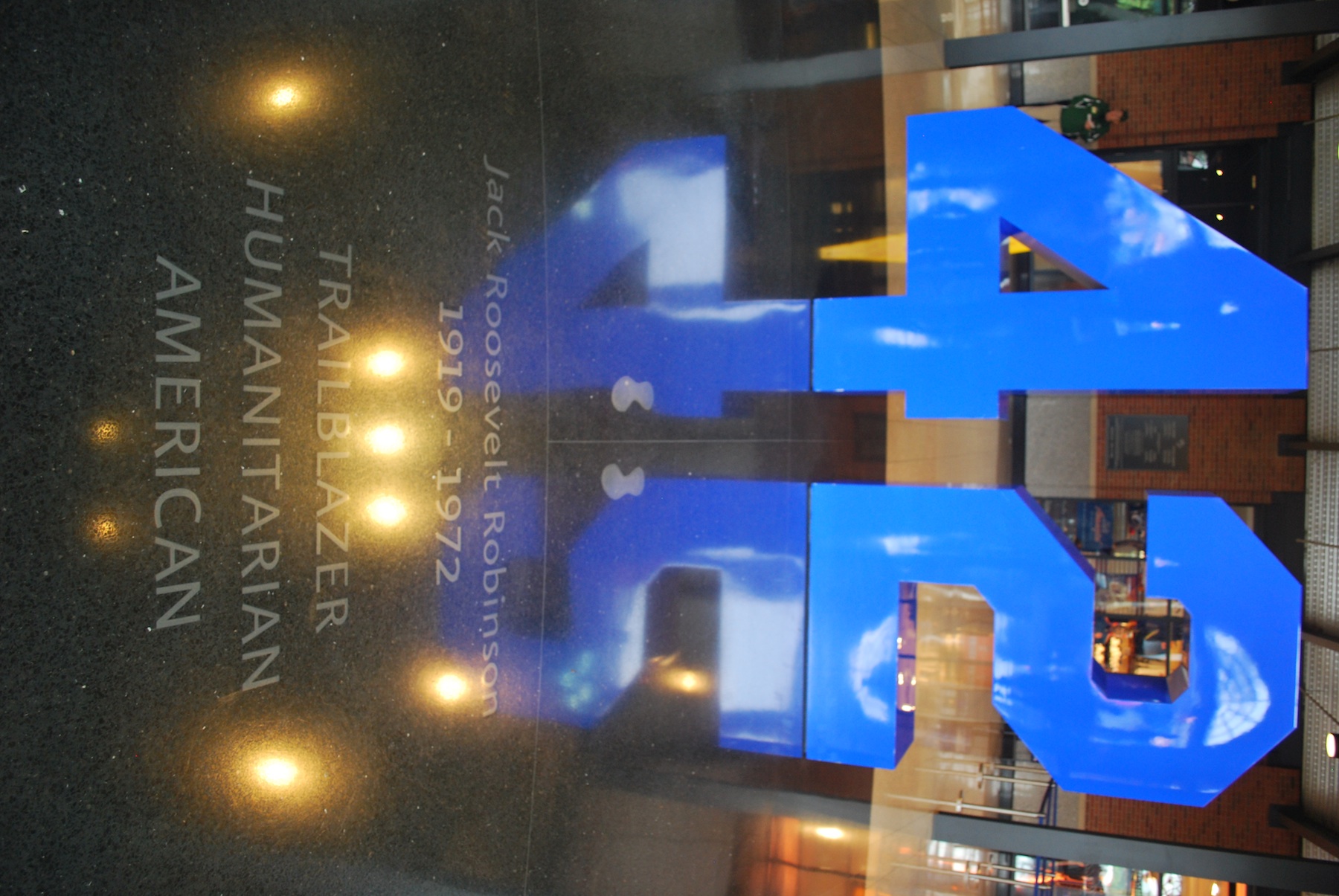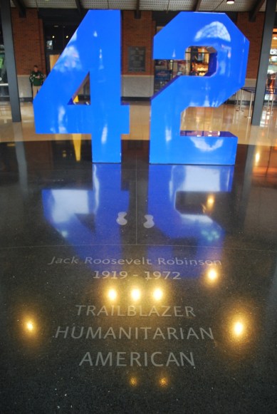 Behind the middle escalators there’s a giant number 42, with Jackie’s full name and some defining words in front of it.