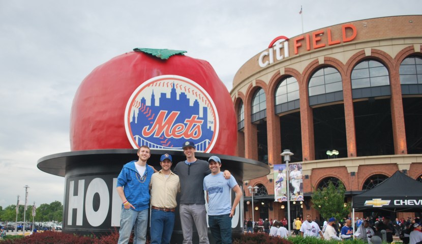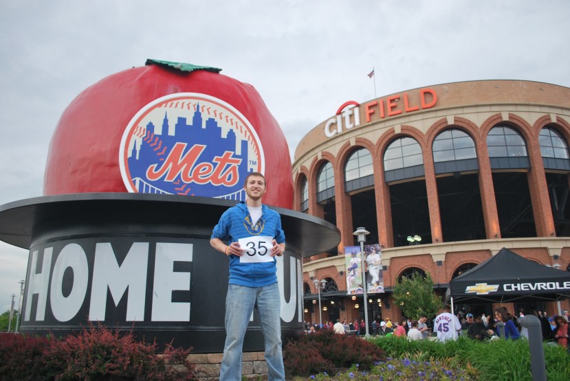 I went to the player will call window and got my game ticket, which was in section 121. It just so happened that Luke, Jessy, and two of their friends also had seats in 121. There was some confusion and David thought that I was going to be getting two tickets, but he was able to get a ticket and sit with the other guys. I sat in my seat which was 13 rows behind them, but eventually moved down and caught the last few innings with them. We had also gotten a picture with the four of us in front of the Home Run Apple. From left to right it’s myself, Jessy, Luke, and David.