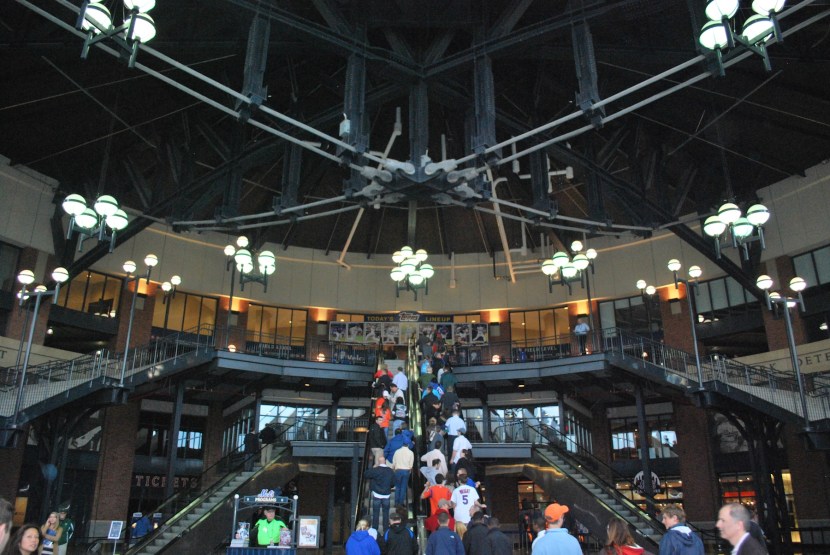 From the top of the escalators, and looking back down and out of the rotunda provides a nice view. The rotunda was made to somewhat resemble Ebbets Field, and they did a good job.