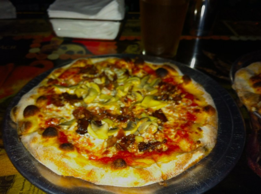 We jumped back on the 7 train after the game, and went back to Brooklyn. Before heading back to Luke’s place, we all agreed that stopping for some pizza and beer was in order. Luke and David had told me about a bar (Lulu’s) where if you buy a pint of beer you get a free pizza. I thought they were messing with me but it’s no joke. If you want toppings (other than cheese), you have to pay $1 per selection, but it’s worth it. I had a wheat beer and then paid an extra $2 to get mushrooms and bacon on my pizza. The result was a pizza that I demolished in about five minutes.