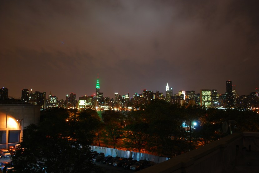 We went back to Luke’s at around midnight, and returned to the rooftop because it was still nice out. I had nowhere to set my camera to get a (really) good night shot, but this will do. The green building is once again the Empire State Building.