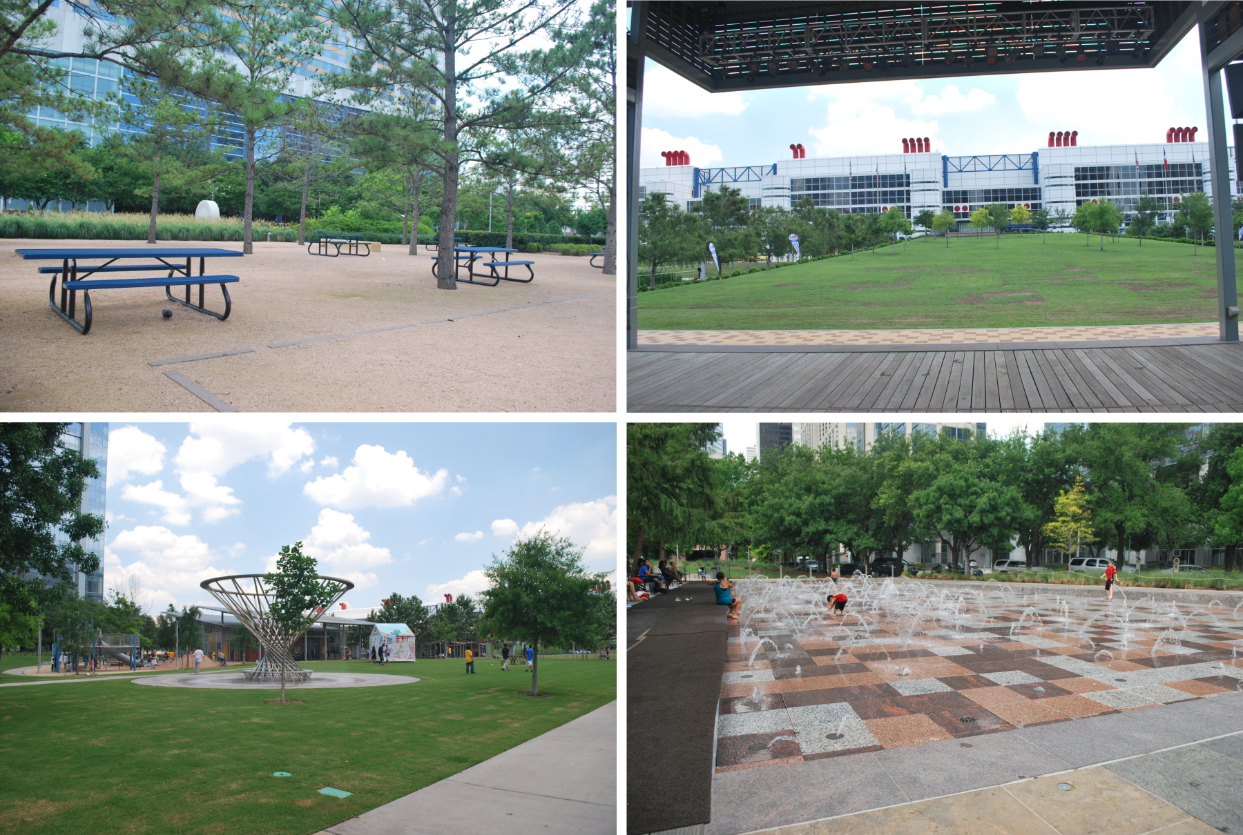 Thursday I got up around 9:00 am and I took advantage of Holiday Inn’s breakfast. I had a bowl of Frosted Flakes, a glass of orange juice, a cinnamon roll, an omelet, and a banana. I also took an apple to snack on before I left for the day. I didn’t really have plans for the day, but I passed Discovery Green the day before, and figured I could spend some time there before the game. I got there around 1:20, and spent a good hour walking around and taking pictures. What is Discovery Green? I’ll let this explain it.