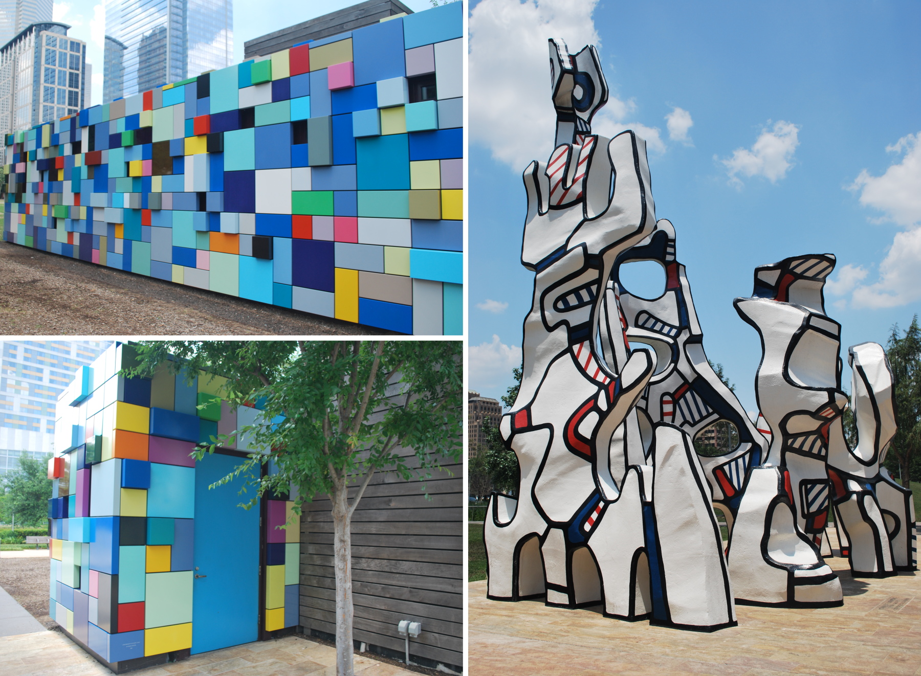 There was also some art pieces. The upper left picture is of a structure that I just thought was a piece of artwork, but as you can see from the lower left picture, it has a door. If you look closely at the top left picture you can see some tiny windows, so I’m not quite sure what it’s used for, but I’m intrigued. The picture on the right is a piece that’s on display along the Avenida de las Americas, the street that runs right in front of the George R. Brown Convention Center.