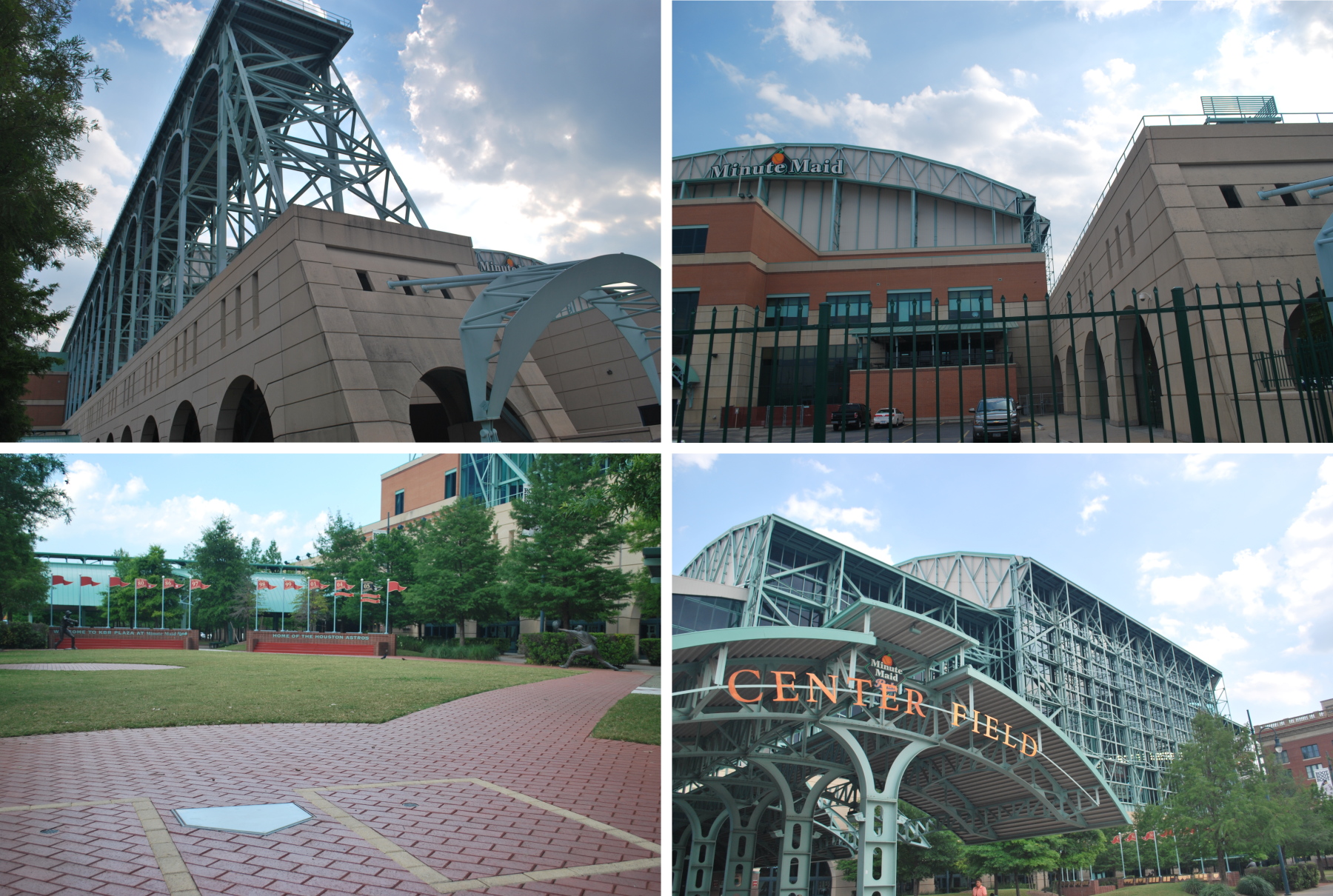 I went back to the hotel to get ready for the game, and I got a start on uploading all the pictures I took from Discovery Green. I left my room around 5:15, and made it to ticket window 30 to pick up my ticket by 5:30. The guy at the window said the visiting team tickets weren’t there yet, so I decided to walk around the exterior of the park to kill the time. There were things to note, and going clockwise from top left: