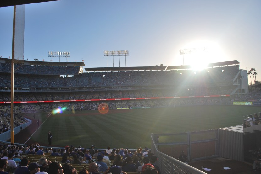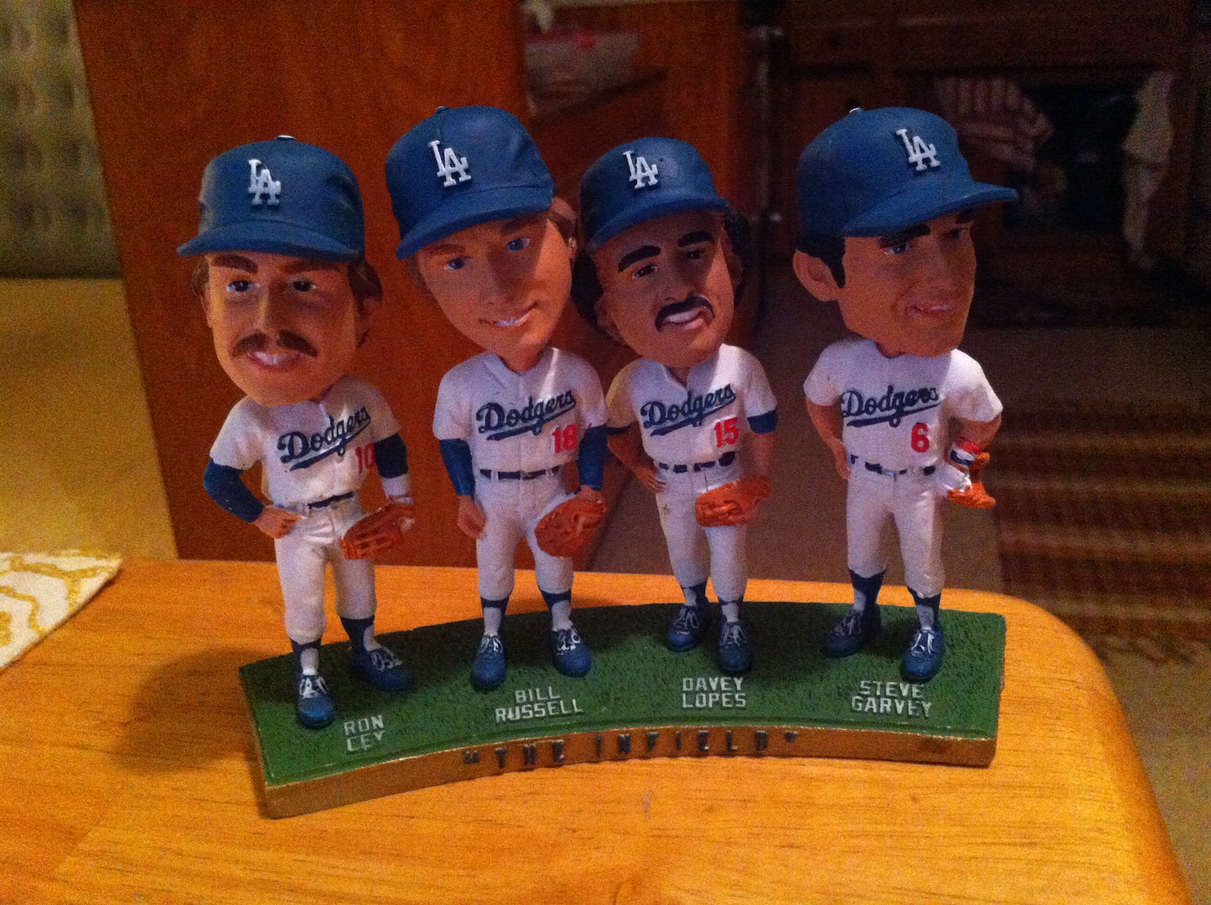It was “The Infield” bobble head day, and it was almost a full house. The announced paid attendance was 51,137, but there were a lot of people who got their bobbleheads and just left. There are Brewers fans who do this as well, and I don’t understand it. The only reason the bobble head means something to you is because of the game of baseball, so you must enjoy it at least a little, right? The bobble head commemorates the Dodger’s infield of Ron Cey, Bill Russell, Davey Lopes (former Brewers manager), and Steve Garvey, who played together for 8-plus seasons, with their first appearance together in June of 1973. I’m debating keeping the bobble head just because I think it’s cool, but I’m not sure I can fit it in my suitcase.