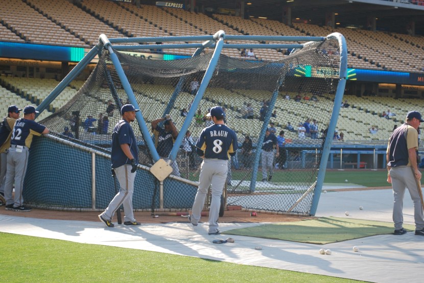 When the Brewers started taking batting practice, Dustin and I just took it all in and we talked with Adam (and others) about baseball. Gomez and Braun were laughing about something outside of the cage, and it was exciting being so close.