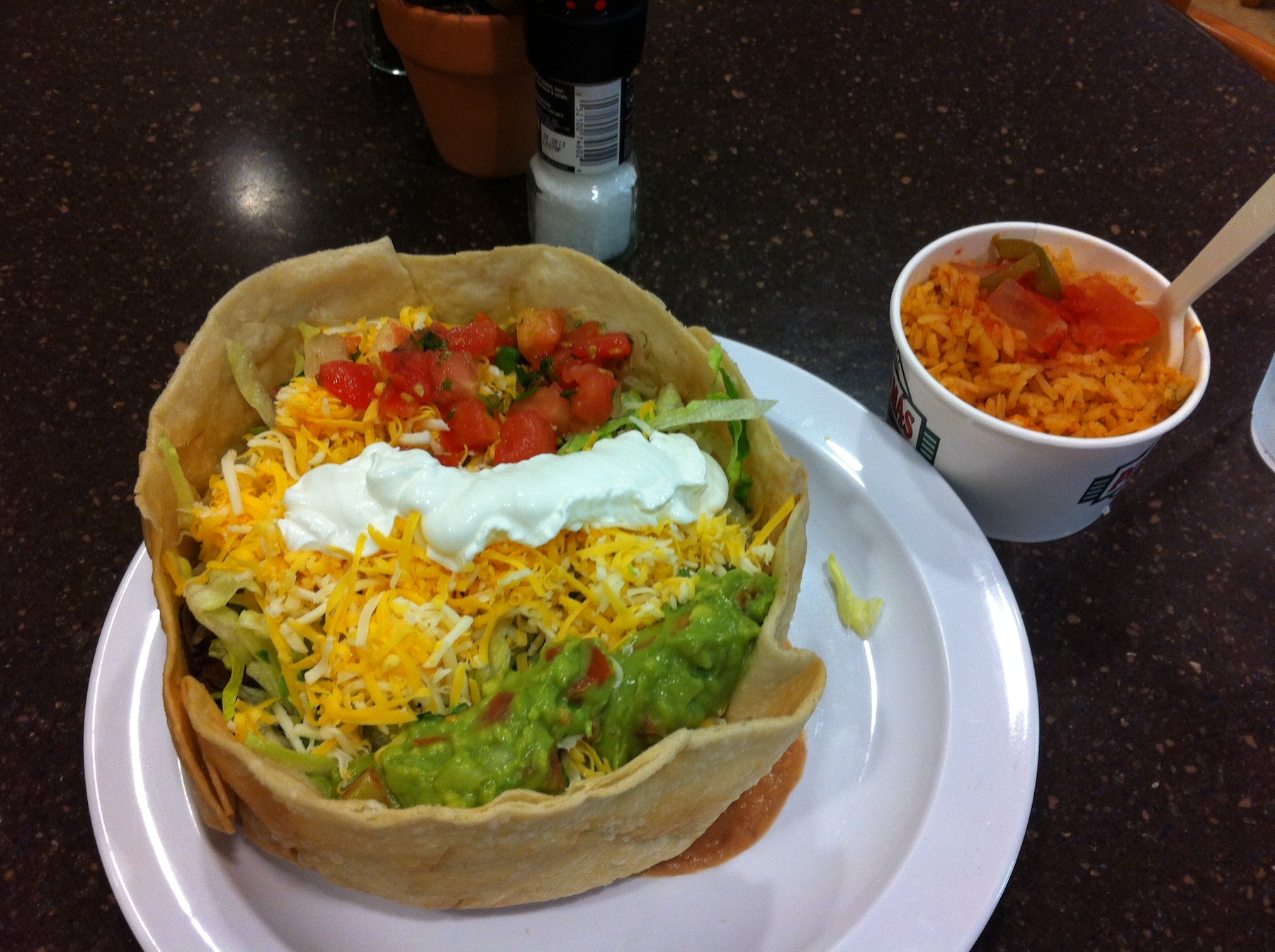 Dustin and I were planning on visiting the Hollyhock House on Wednesday, but in the morning I checked the website and since they are doing some construction, tours are only available Friday through Sunday. Instead we bummed around until lunchtime, and then we met up with Simon at Warner Bros. at 1:00 pm. We had some lunch in the dining area, but didn’t see any celebrities, which was to be expected because everyone had the week off. I ordered the grilled steak tostadas, and was a little surprised when this came: