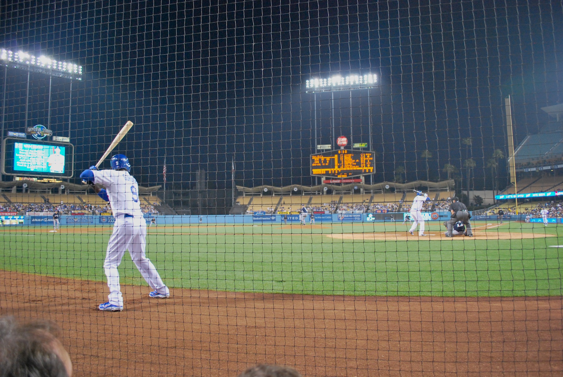 This was the view from the seats we were in. You really can’t get much better than that. The screen was a little bit of a distraction, and when it was still light out I lost some foul balls as they went skyward, but overall the seats were amazing.