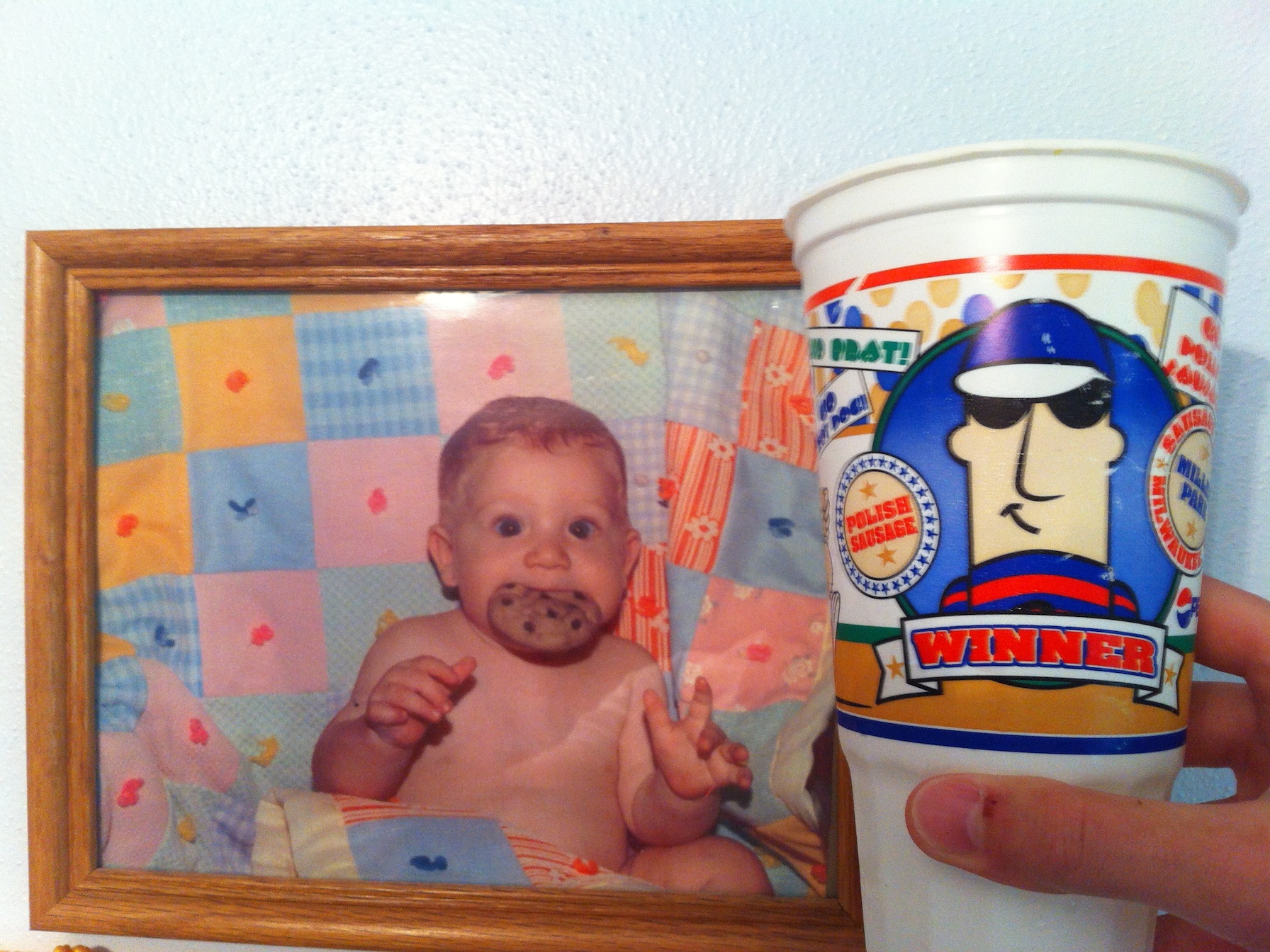 This is some foreshadowing but during the day I found a couple of these cups in my parents’ cupboard. I had forgotten all about them, and must have brought them home from a game back in 2003 or 2004. I can’t remember the last time I had a souvenir soda at Miller Park, so I’m not sure what year they are from. I tweeted the picture later in the day saying “Who would’ve thought that these two would grow up to be such good friends. Pretty good, no? If you’re not aware about my sausage preference; Polish is my favorite. Also, it’s a fake cookie if you weren’t sure.