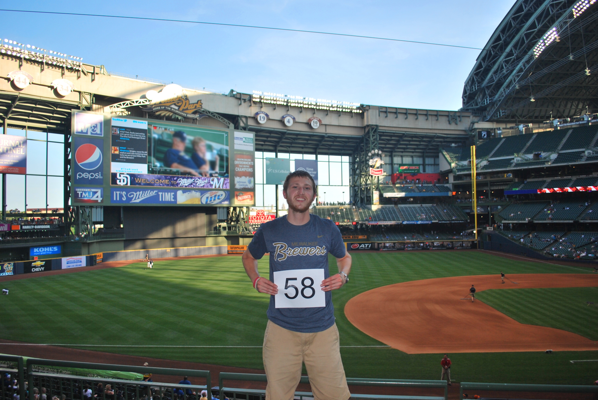 I got inside Miller Park just before 6:15, and went right to section 226 to get game photo number 58 taken. A nearby fan helped me out, and took three or four pictures, with me instructing him of what I wanted between each one. He did a great job and I thanked him for his efforts.