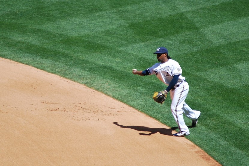 In the fourth, Cameron Maybin grounded to Rickie Weeks for the second out of the inning. I snapped a picture of Rickie as he was about to release the ball, to show how much of a sidearm delivery he has.