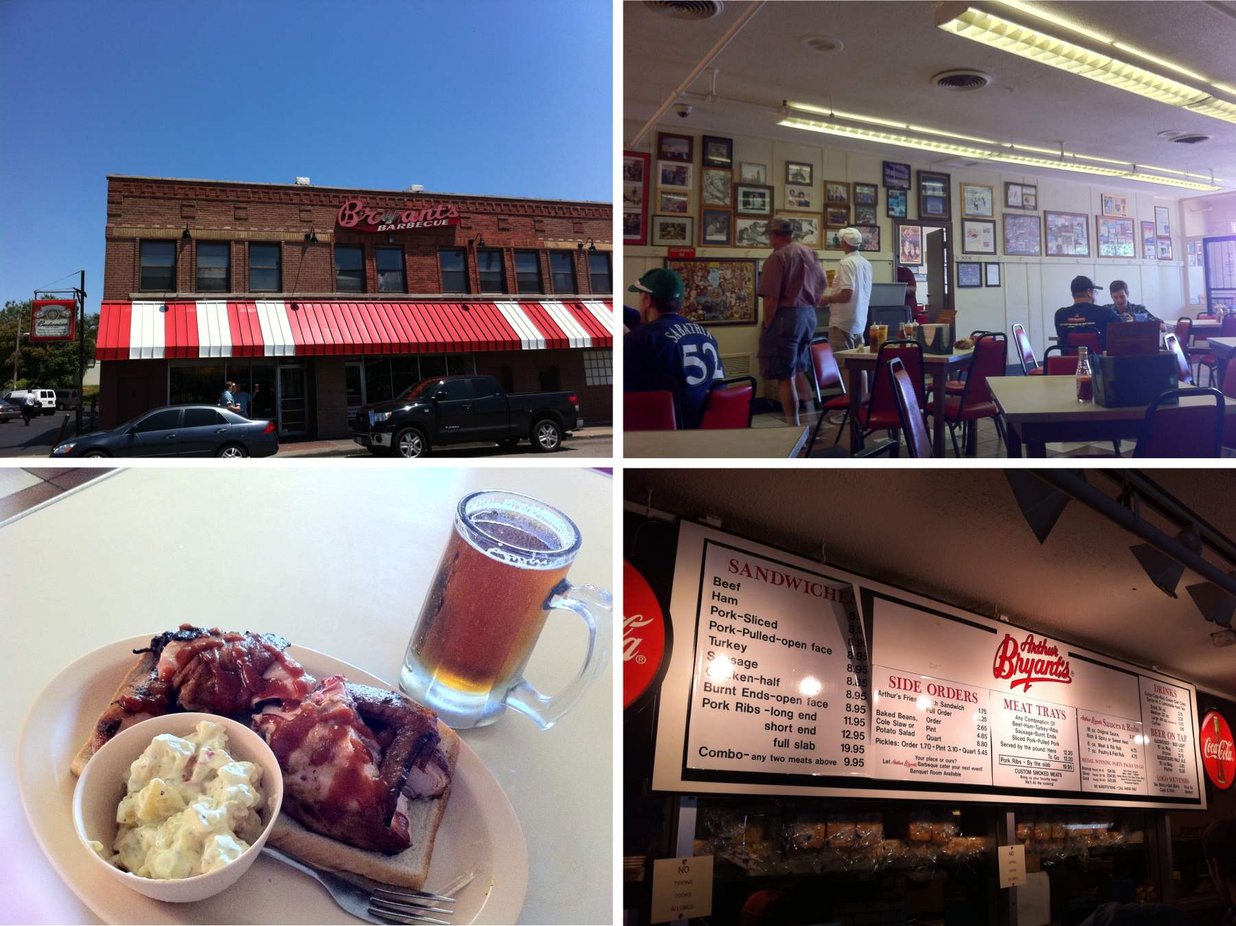 Wednesday started off slow, and I was working on the blog post for Tuesday until about noon. I decided to hit up Arthur Bryant’s Barbecue, due to a recommendation from Trenni Kusneriek (and others). It’s on Brooklyn Ave and 18th Street southeast of downtown. There are two other locations but this location was the original (ok, not really the original, seeing as Arthur Bryant’s has been around since 1908, but it’s near where the original was). I got there around 2:15, and was not disappointed. The four-parter below, going clockwise from top left: