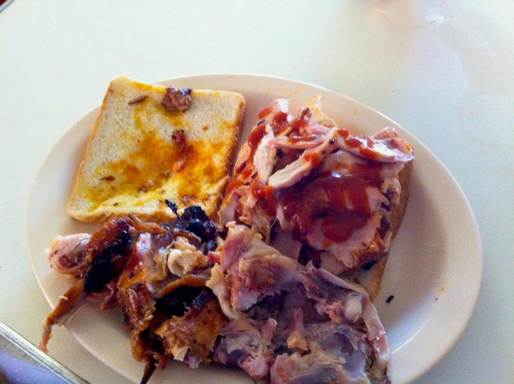 4) I was wrong, it’s literally half a chicken, bones and all. I wasn’t sure if I was supposed to just eat the chicken off the bone, and then have two pieces of bread, or shred the chicken myself. I also got a side of potato salad.