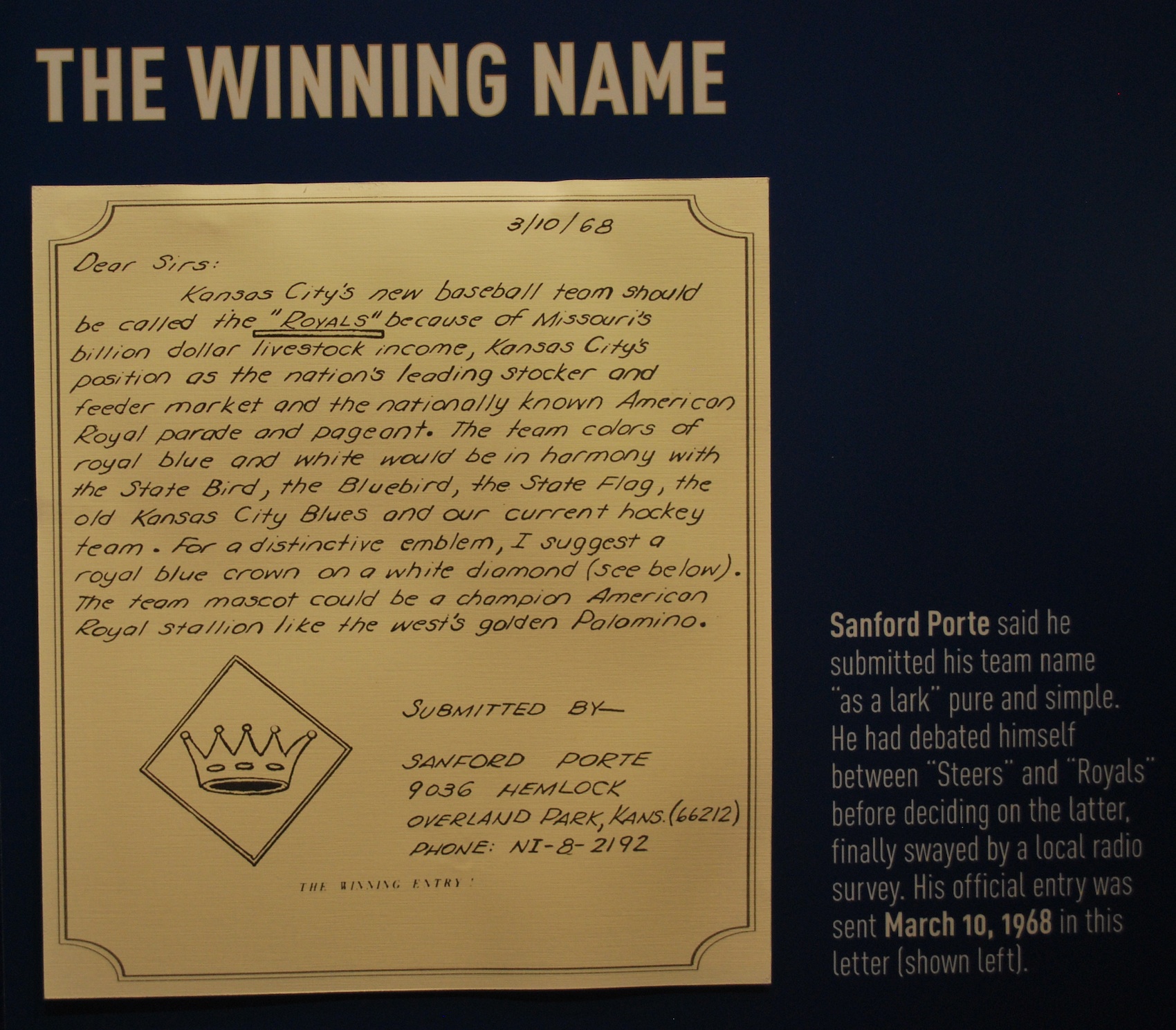 The thing that I thought was coolest was the letter from a fan of the new franchise. The owners had asked people to suggest names for the new team, and this was the winner. I never would’ve guessed the reason for the Royals name. I probably would’ve thought it was just implying that they were royalty. You can click on it if you need a larger image (as is the case with all of the pictures).