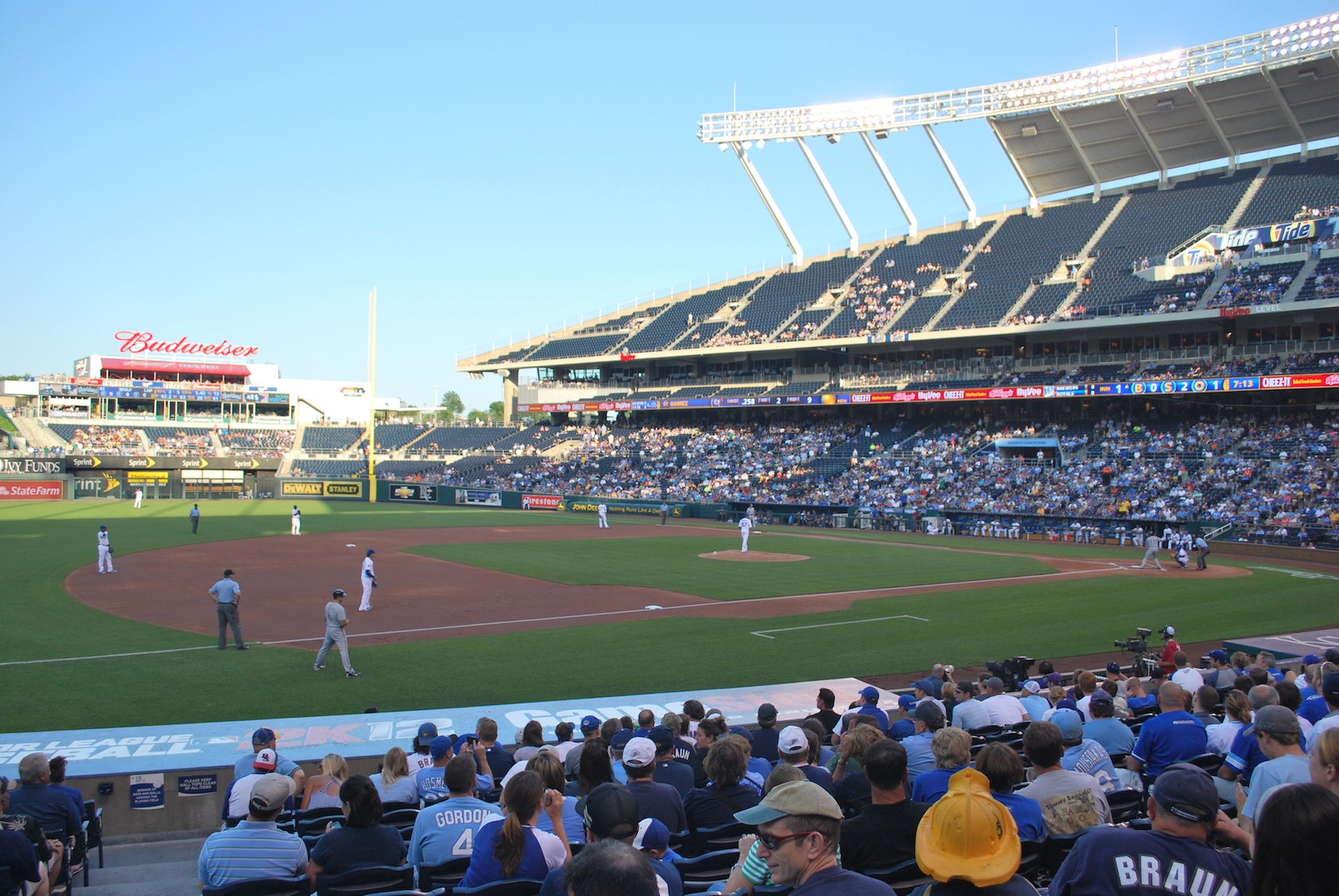 The game got underway and again the Royals jumped out to a 1-0 lead after a leadoff double and two groundouts. The Brewers got on the board in the third, and it was an inning that I will likely never see again. After Kottaras popped out to leadoff the inning, the next three Brewers all reached on infield singles. Maysonet reached on a swinging bunt, and then Aoki and Gomez both bunted for base hits. A Ryan Braun strikeout followed the hits, but then Aramis Ramirez hit a ground ball to short that was ruled a base hit as well. The shortstop tried forcing out Gomez at second, but his wheels allowed him to get there before the throw. Maysonet scored and the Brewers tied it at one. Four infield hits in one inning: very rare.