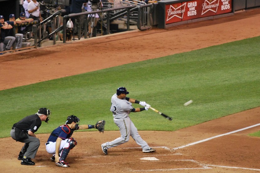 1) Rickie Weeks in the 2nd just barely getting a piece of a ball, but hitting it way down on the handle.
