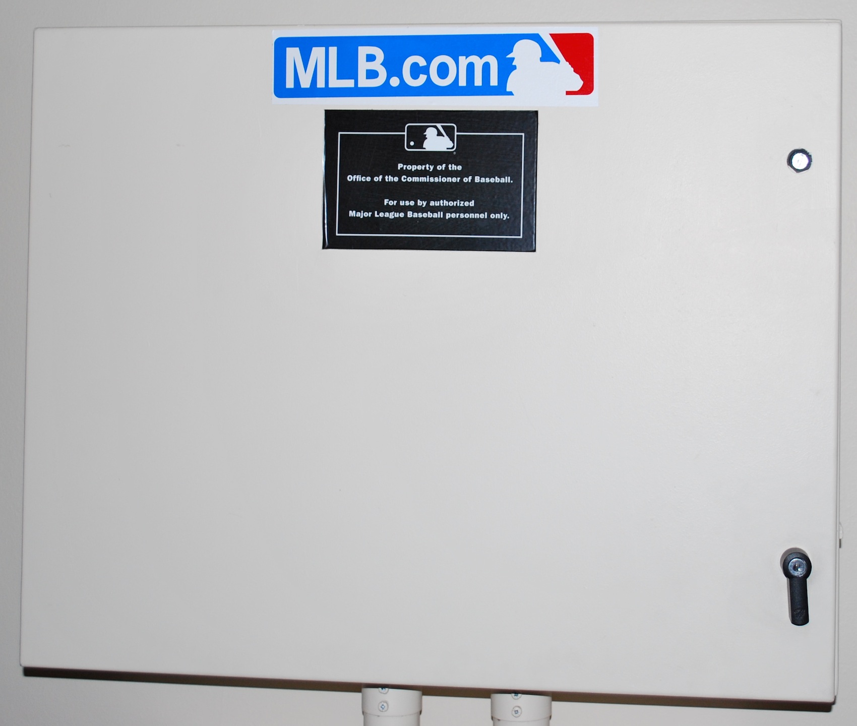 The umpires got together, talked about it, and then disappeared into the bowels of the stadium. Since it was a potential home run, they are allowed to look at it, and they went to the video box where they are shown video replays from MLB headquarters in New York. I got to see one when I took the Coors Field tour on May 24th, and I’ve included below a picture that I took during the tour.