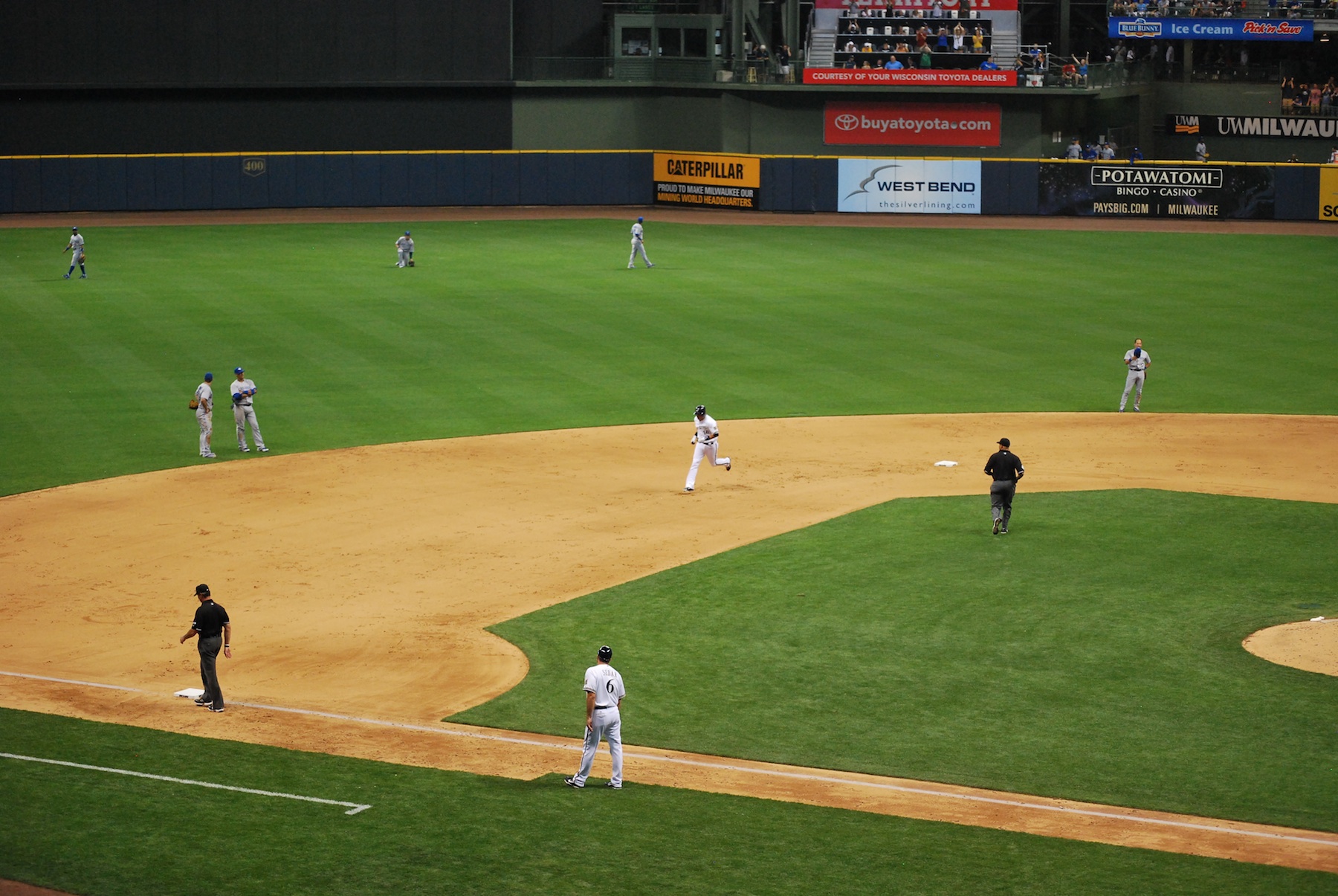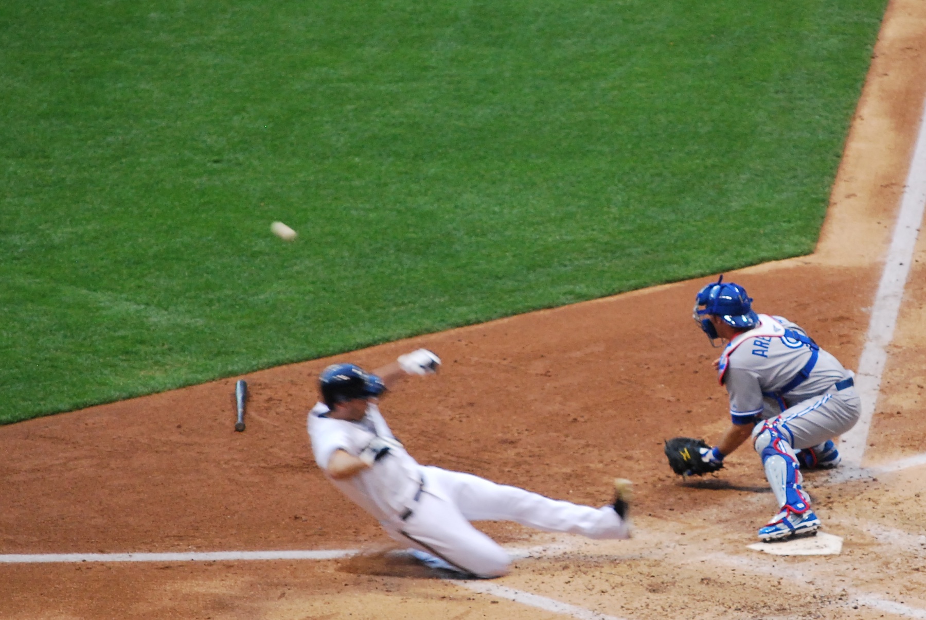 In the bottom of the second it got even better for the Brewers. They scored four runs on a safety squeeze turned single from Aoki, an RBI fielders choice grounder from Braun, and a two run double from Ram-Ram. Braun was safe at home on Ramirez’s double, and it was a (somewhat) close play. I apologize for the lack of clarity in Braun’s figure. I yelled “SLOW DOWN, I’M TRYING TO GET A GOOD ACTION SHOT!” I think it just made him go faster (at least the catcher and the bat listened).