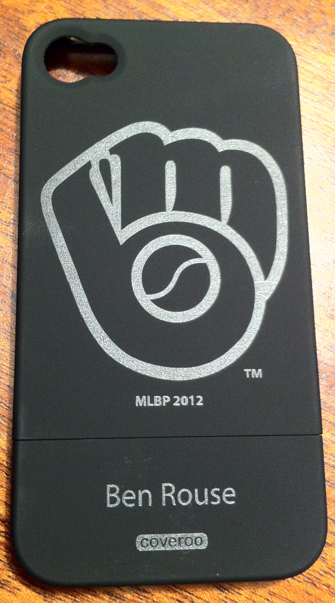 After getting the game number picture Brandon and I were waiting near section 214 for the Ice Man to appear. I’m guessing he had taken the day off because I never did see him. We did see Jill Aronoff, however, who is the Senior Director of Merchandise Branding for the Brewers. She said she had the replacement case for me and went back to the executive offices to get it. I had notified her that the case they had made for me was breaking down, and she said they would swap it out. She had taken the case from me earlier and showed it to some of the manufacturer’s representatives. They said that a substance must have gotten on the case, because they had never seen the type of wear that was visible on my case. I have in the past used hand sanitizer on my phone and cases, and I’m guessing that’s what I had done. Phones are known to have A LOT of germs, thus my precautionary measures (hey, I have the immune system of a 2 and half year old, sue me). So if you’re going to go to the team store to have one of the below cases custom made, don’t use hand sanitizer on it. They are really cool, and if you want one you should check it out at the team store in the left field corner of the field level concourse.