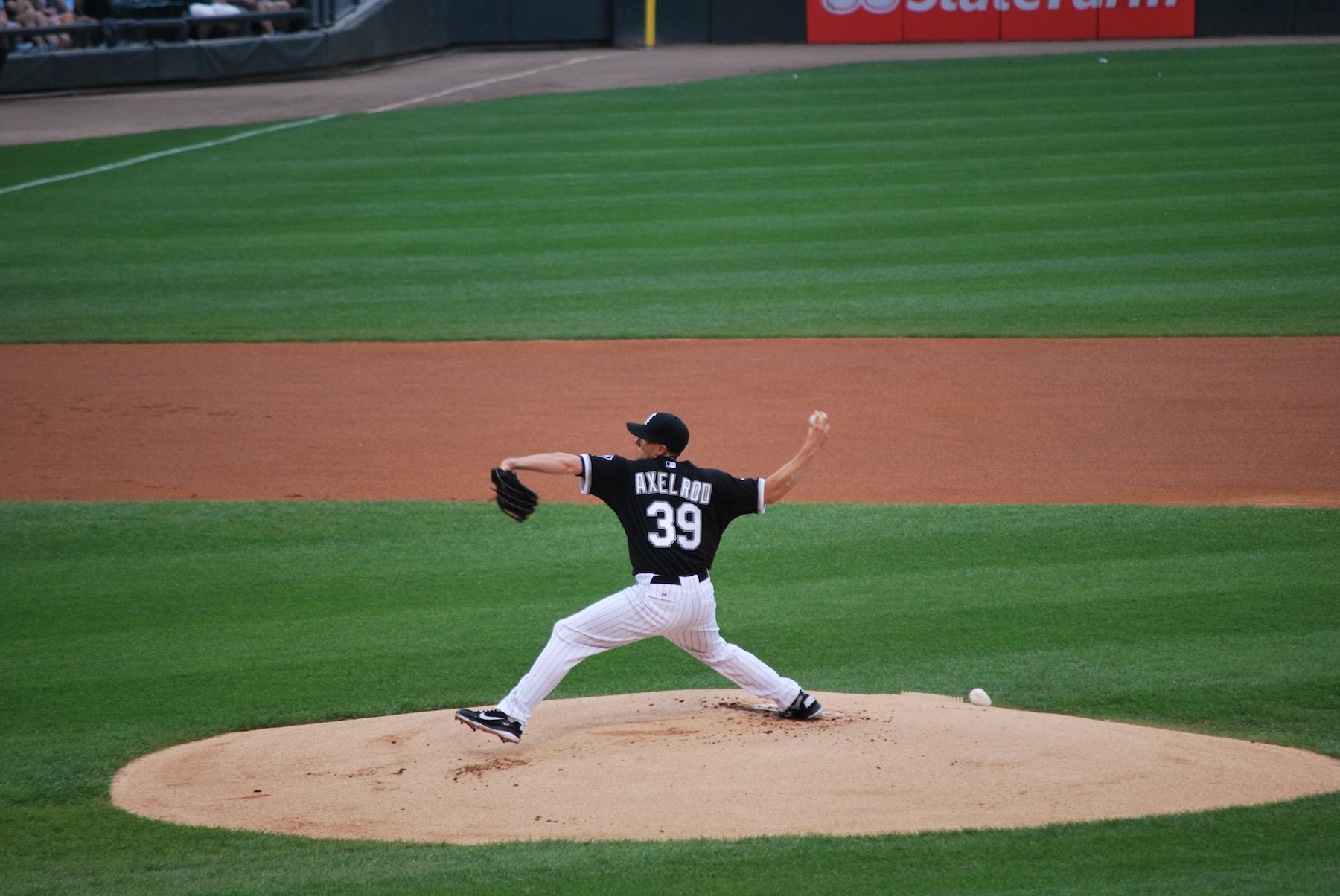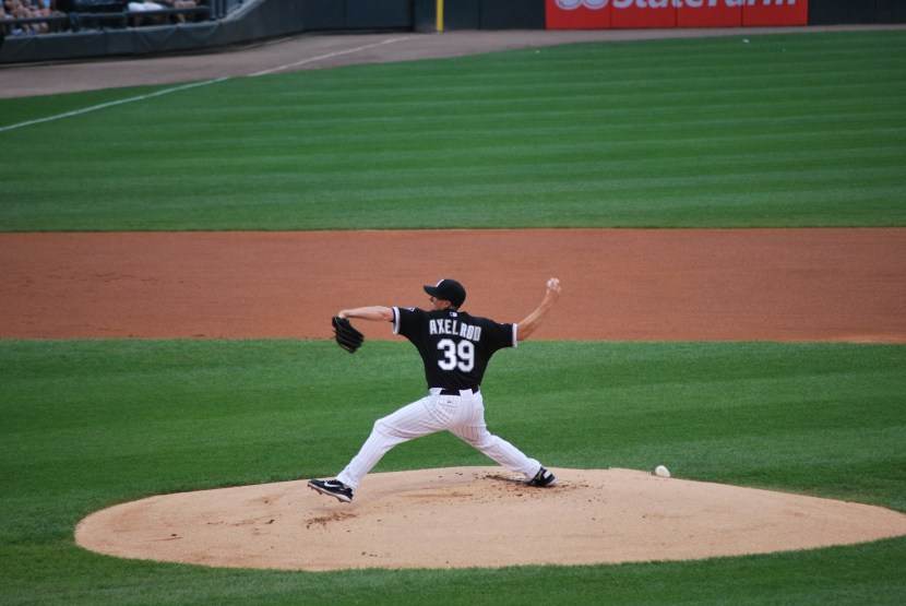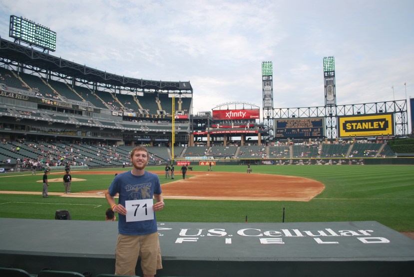 The game started and I couldn’t help but to take a picture of the White Sox’s starting pitcher. Here he is throwing the second pitch of the ballgame to Norichika Aoki. Just how sweet of a last name is Axelrod? Even if he doesn’t have a successful big league career, he’ll still have that sweet*** last name to fall back on.
