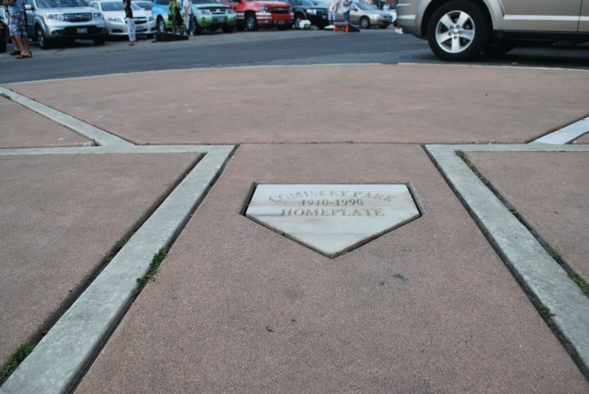 Alex and I managed to eat the whole thing save for one small sliver of a slice. It was quite good, but the $22.25 price tag for a medium pizza does seem a little ridiculous. To their credit, the rent that they have to pay at the location they’re in is probably much higher than a place in Madison. We jumped on the L at Division, and took it to the Jackson stop, where we transferred to the red line. We got to the Sox-35th stop just before 4:45, and were in front of the Cell a few minutes later. We walked around for a bit and found where home plate at Comiskey Park used to be. They commemorated it with a marble home plate at the site of the original.