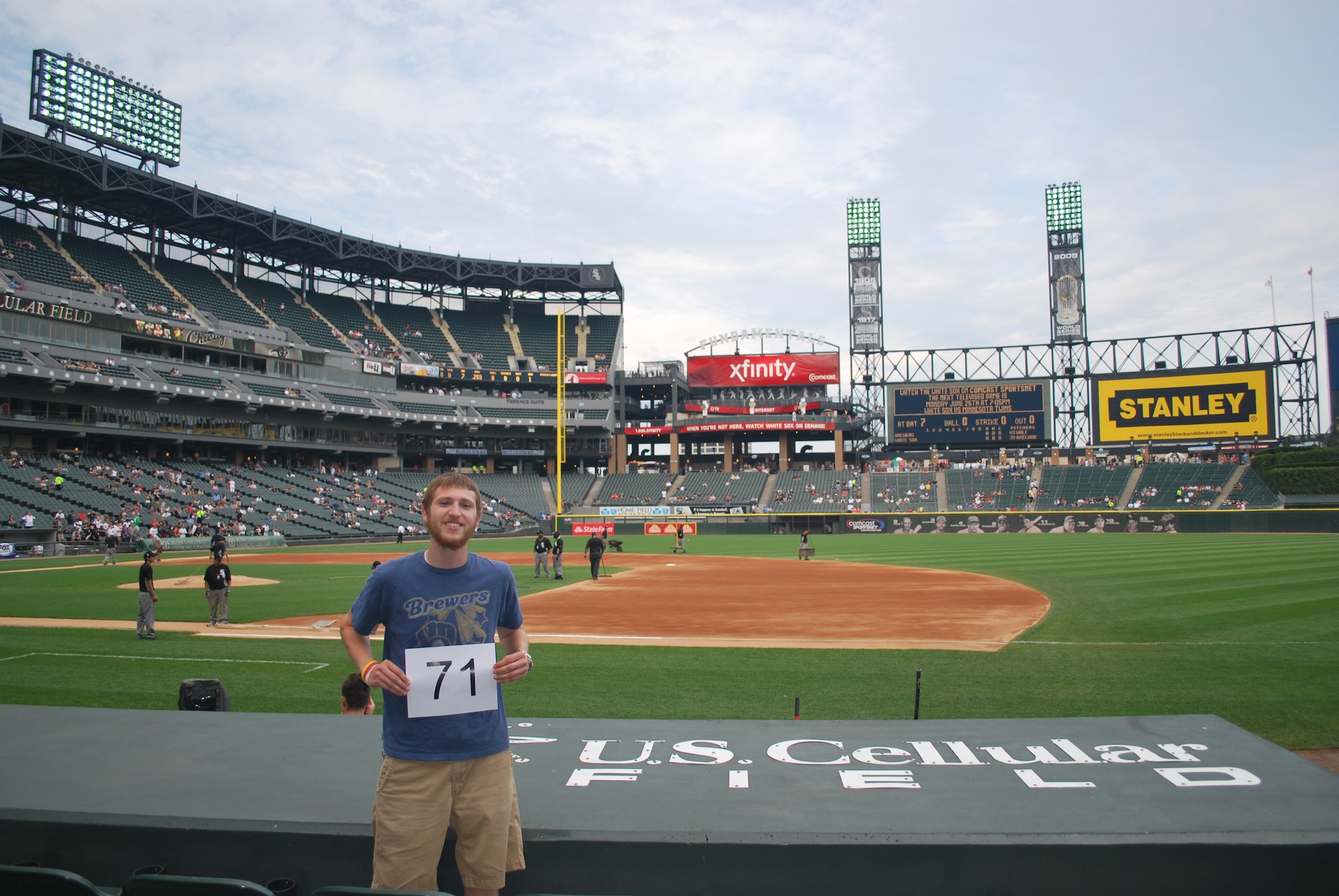 We got inside around 5:10 and waited until batting practice was over. After they removed the protective tarps from the field we went down to get game photo number 71.