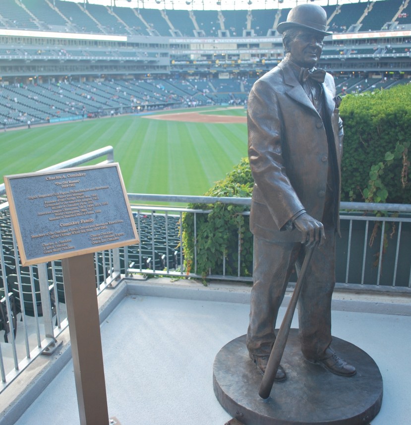 There was also a statue of Charles Comiskey at U.S. Cellular Field, as there should be. Charles “The Old Roman” Comiskey played in the majors from 1882 to 1894. He then managed a Western League team in Iowa, moved it to Saint Paul, and eventually to the South Side of Chicago and renamed the club the White Stockings. They joined the renamed American League, which became a major league in 1901. A lot of people still refer to U.S. Cellular Field as Comiskey Park, which was its name from 1991 to 2003. The White Sox played in one stadium from 1910-1990, and for 64 of the 81 years it was called Comiskey Park.