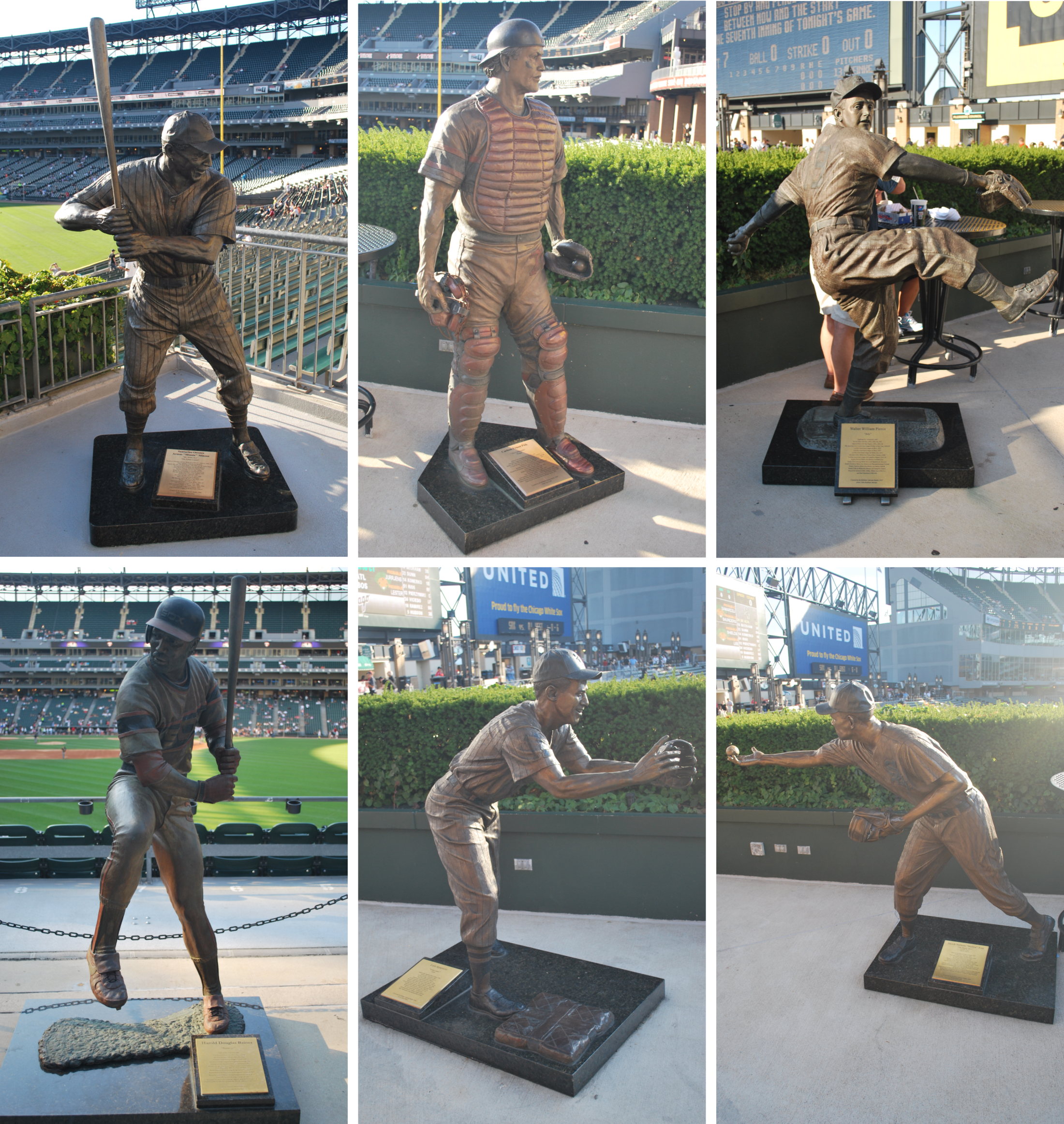 Before I forget; I had taken some other pictures before/during the previous two games, and hadn’t posted them. This first one is a six parter, and has the statues that the White Sox have beyond the centerfield wall. Going clockwise from top left: