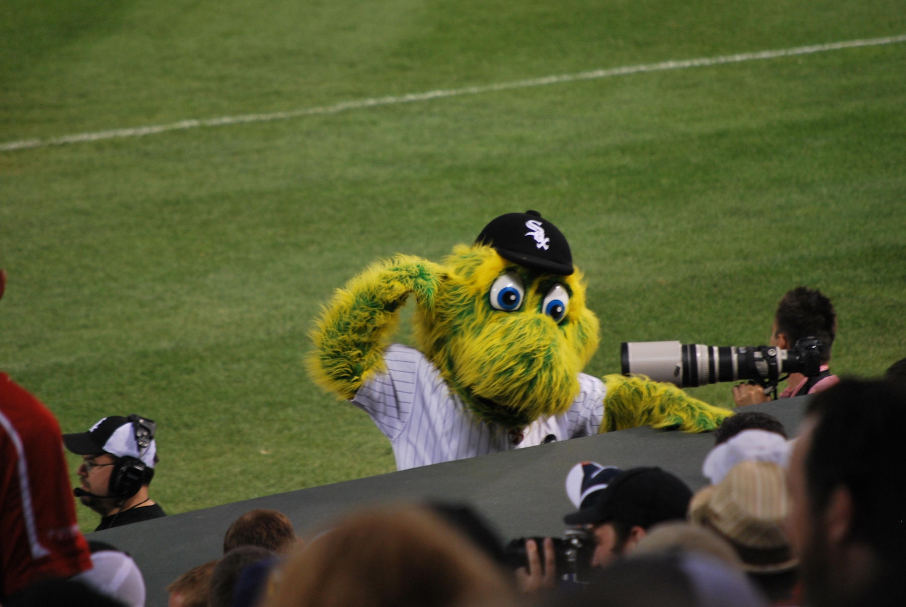 One picture that I didn’t post from Saturday’s game is of the White Sox’s mascot; Southpaw. I don’t think teams need to have mascots, but it’s mainly for the kids, so I’ll let it slide. Here is Southpaw as he tries to get the crowd going from the camera well. I’m not sure what he’s supposed to be, but he better be a lefty with that name (southpaw is slang for a lefty, and mainly used in baseball circles).