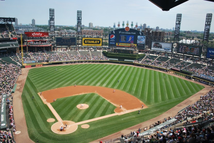 Sunday was getaway day for the Brewers and myself, and I was hoping for a smooth-sailing afternoon. Alex and Jess (my hosts in Chicago) joined me for the game, and we left their apartment in Logan Square just before noon for the 1:10 game. I thought this would be plenty of time because U.S. Cellular field is only nine miles away. I was wrong. The traffic wasn’t too bad, but once we got to the 35th street exit we realized we should have left much earlier. I’d say we were off the interstate by 12:15, but weren’t parked until 12:45. We quickly walked the 1/3 of a mile to get in the park, and made our way to the upper deck. Luckily the staircase provided a good spot for game photo number 72, because the seats towards the front of the sections were pretty much full 15 minutes before first pitch.