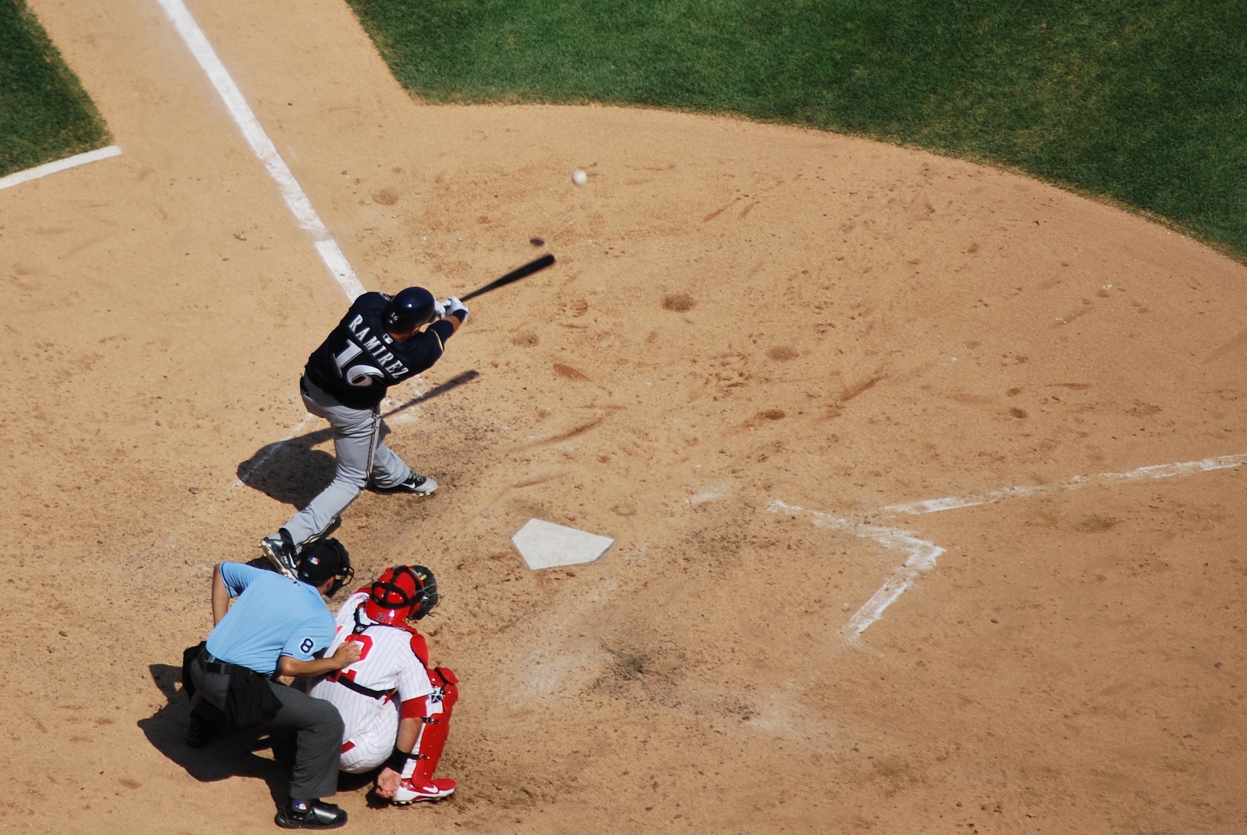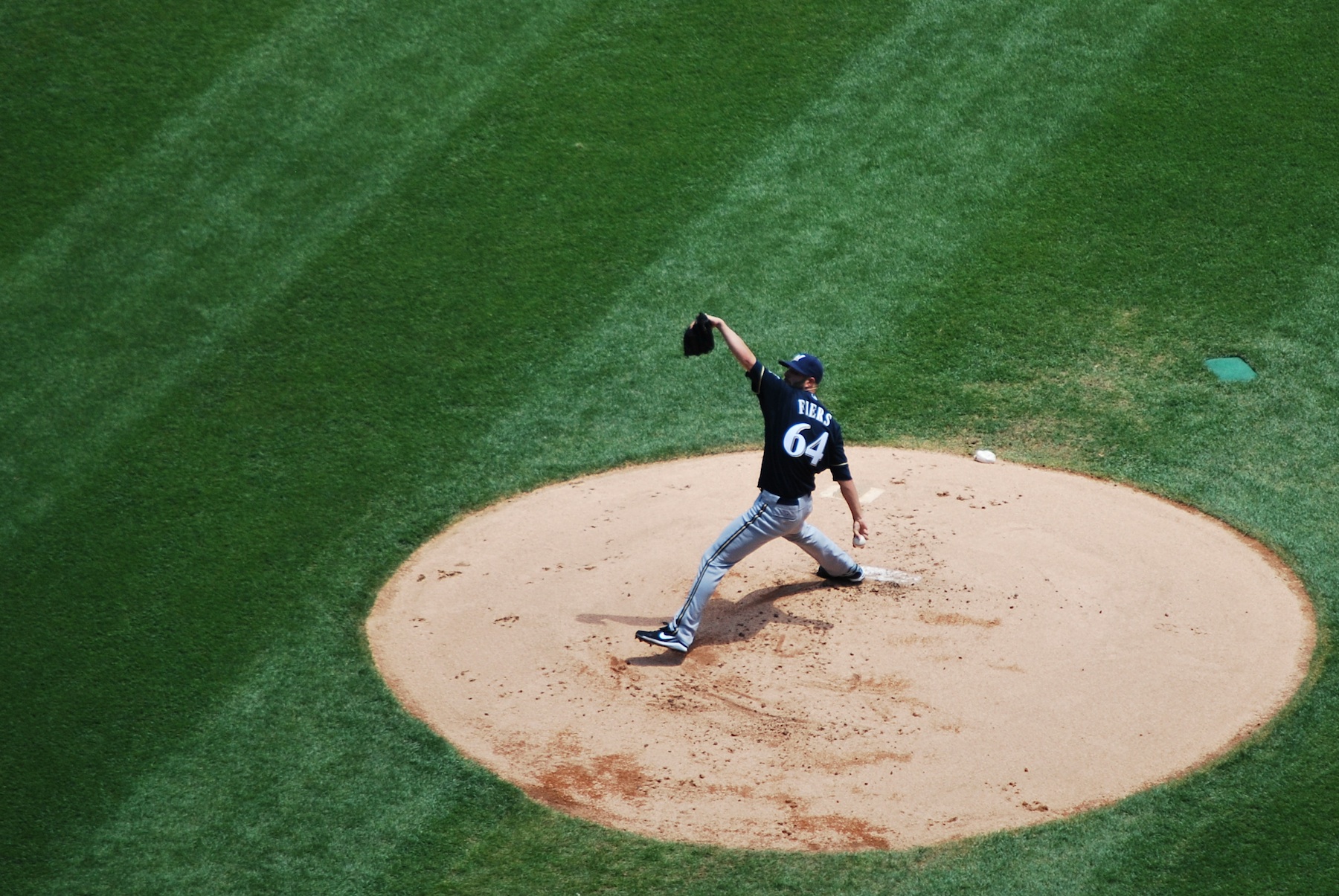 There wasn’t too much action during the game, but the flying earwigs gave us something to think about. One landed on Jess’ shirt and she freaked out a little. One landed on my knee and I destroyed it after brushing it off, and another landed in my hair; not cool. Other than that we had a good time in the upper deck, and I recommend the seat location, as long as you don’t get stuck behind one of the many beams that support the roof. Mike Fiers was on the hill for the Brewers, and pitched very well, he pitched seven and a third, gave up five hits, one walk, no runs, and struck out seven. Here he is pitching in the first inning.